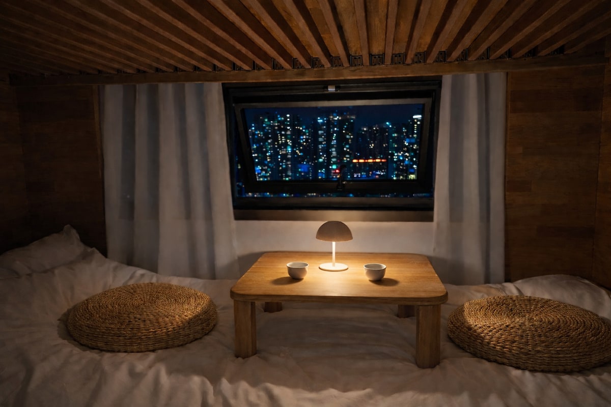 🏡 Гойоче | Сенсорне перебування в Хвасон Хенгун, Сувон Goyojae — це затишне помешкання, розташоване між палацом Хвасон Хенгунг, Хенгрідан-гіл та Гонгбанг-гіл. У грудні 2025 року всі кімнати та сантехніку було повністю перероблено, щоб створити новий і приємний простір. Поєднуються тепле відчуття старої будівлі та сучасний комфорт. Ви можете комфортно перебувати з сім 'єю та друзями. Також є приміщення з припливною ванною (джакузі), щоб зняти втому від подорожі до Хенгунга. Прогулюйтеся навколо Сувон Хвасон Хенгун і поверніться на тиху ніч, де можна розслабити тіло і розум у тиші.