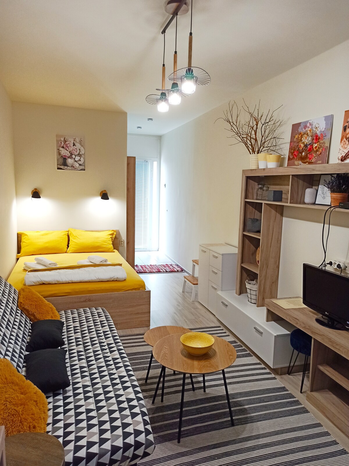 Квартира розташована в самому центрі міста біля оперного театру, театру, пішохідного району та ресторанів. У ньому є дві кімнати, спальня з двома ліжками, які можна об 'єднати, і зона відпочинку. У вітальні є повністю обладнана кухня, високий стіл і диван-ліжко, телевізор із цифровим телевізором. Обидві кімнати мають окремий кондиціонер і Wi-Fi. У ванній кімнаті є з 'єднання зі спальнею, а під час прибуття є водонагрівач.