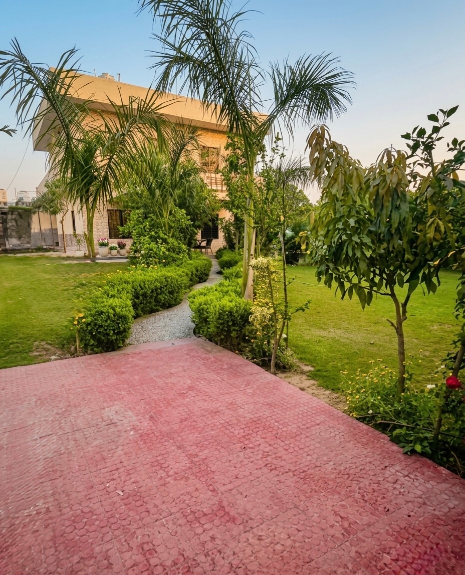 Приватний розкішний притулок недалеко від пагорбів Араваллі — недалеко від міста, але далеко від забруднення, з чистішим повітрям та нижчим індексом якості повітря. Відпочиньте на пишних газонах, розслабтеся в гамаку, поплавайте в басейні та прокидайтеся вранці, насолоджуючись спокійними краєвидами. Насолоджуйтеся іграми на газоні, барбекю під зірками та елегантними вечорами в альтанці з зеленим дахом – ідеально для обідів на свіжому повітрі, музики та святкувань. Спокійне, затишне місце для сімей, друзів та незабутнього відпочинку.