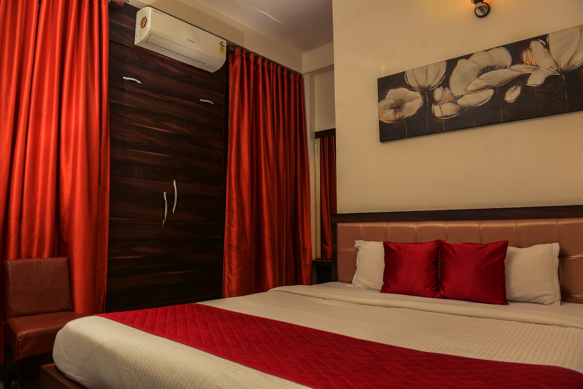 Спокійне, затишне та стильне помешкання з просторою спальнею, кухнею в коридорі та ванною кімнатою для сім 'ї, пари або групи з 4-5 осіб. У помешканні є всі сучасні зручності, такі як телевізор, Wi-Fi, гейзер для ідеального домашнього перебування, будь то приватне коротке або тривале перебування. Кухня добре обладнана для приготування їжі (також доступна 15-хвилинна онлайн доставка їжі на двері). Розташований поблизу шосе, що робить його легким безпроблемним входом і виходом, щоб уникнути міського дбайливого руху.