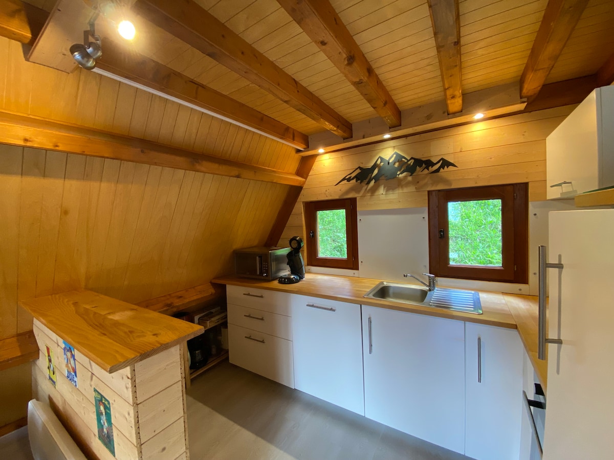 Ця затишна оселя пропонує спокійне перебування для всієї сім 'ї. Він повністю обладнаний і порадує вас розташуванням та ідеальним видом на гори. Ви маєте доступ до верхнього поверху на вході, потім до вітальні з великими загальними вікнами, обладнаної кухні, унітаза/задньої частини кухні, вітальні з усіма сучасними зручностями та мезоніном для дітей. Нижня частина складається з ванної кімнати, 2 спалень із 160 ліжками та однієї спальні з двома двох 'ярусними ліжками
