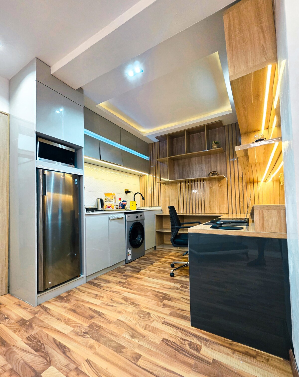 Relax in this serene, designer 1-bedroom apartment in Jahi, Abuja. With warm, earthy tones, a cozy lounge, private balcony, and a fully equipped kitchen, it’s perfect for couples, solo travelers, and remote workers. Enjoy fast WiFi, stylish interiors, and a peaceful vibe just minutes from the city buzz. Your modern home away from home.