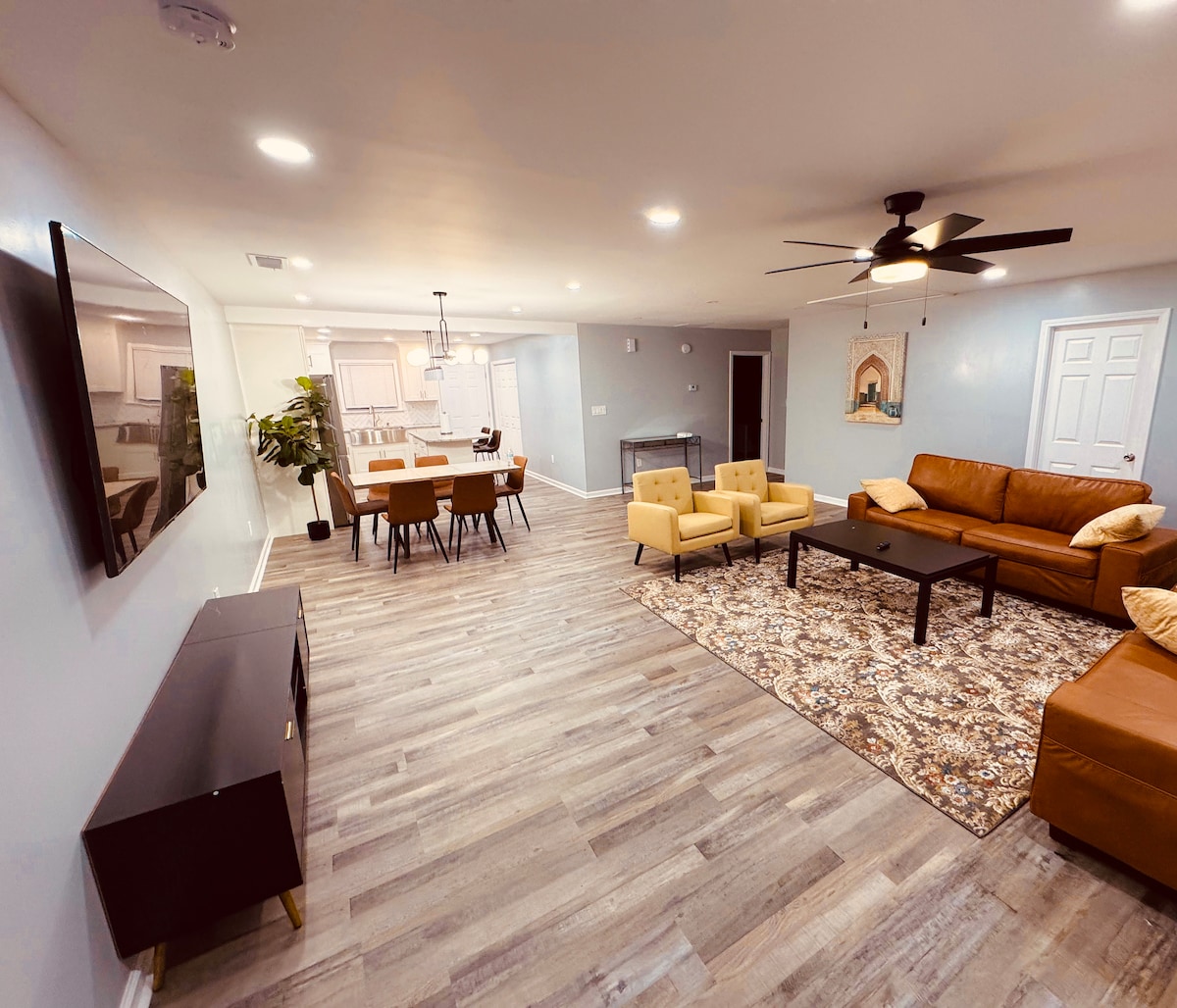 Welcome to your home away from home! This fully renovated 4-bedroom home comfortably accommodates up to 8 guests, offering a stylish open floor plan with high-end finishes throughout. Key Features:Soaking tub ;Elec fireplace; Waterfall kitchen island & sleek custom cabinets;SS appliances, & modern open-concept design; Large rear yard; 2-car garage with 220V outlet – EV charging ready;WiFi & security system for peace of mind ;Formal living & dining areas; private rear yard; books/board games