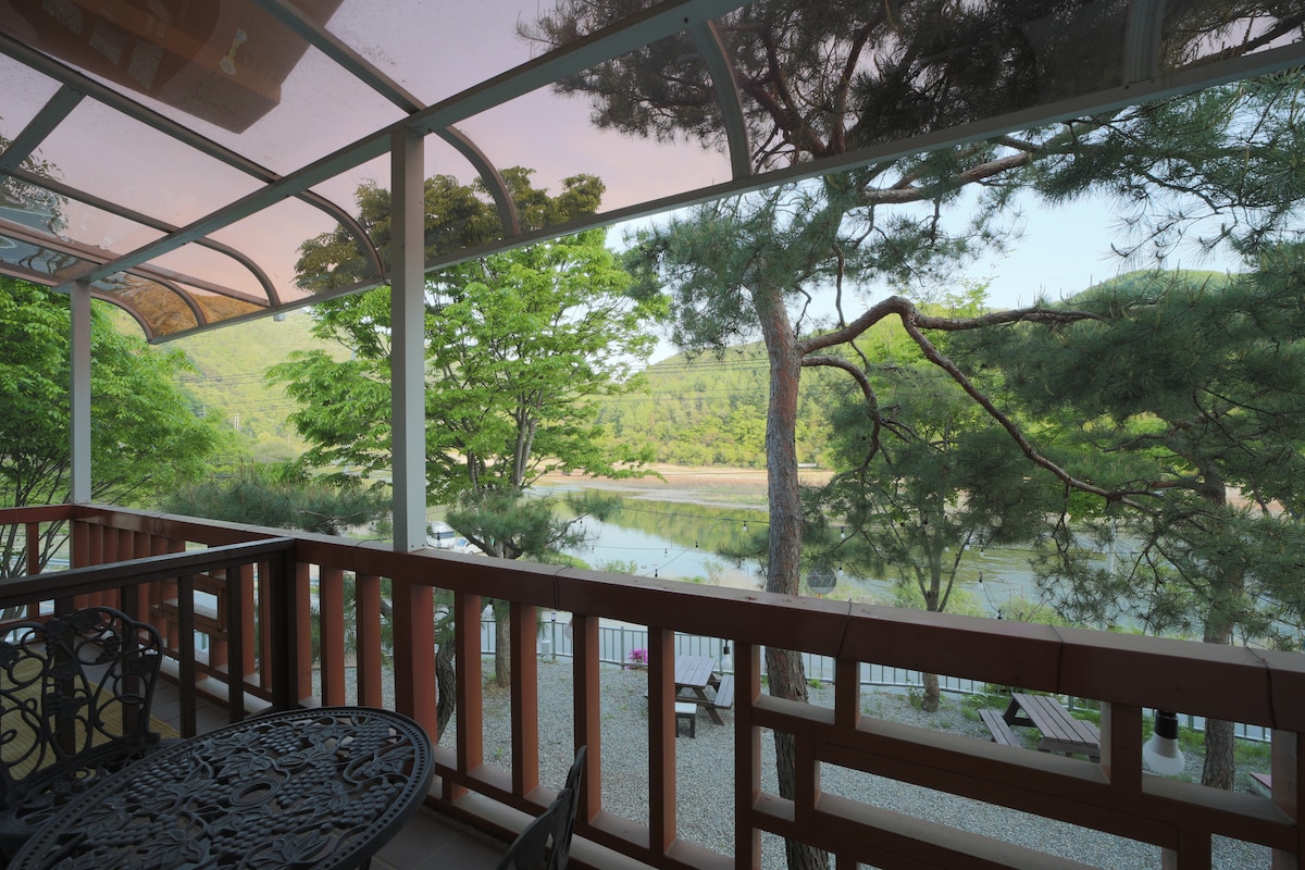 Романтичне чисте помешкання з можливістю безкоштовного кемпінгу біля парку Бівальді (Океанічний світ) з видом на річку Хончхон