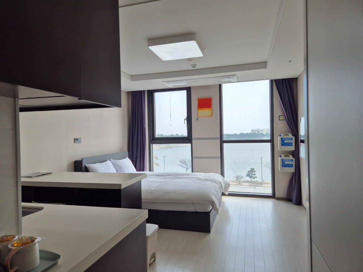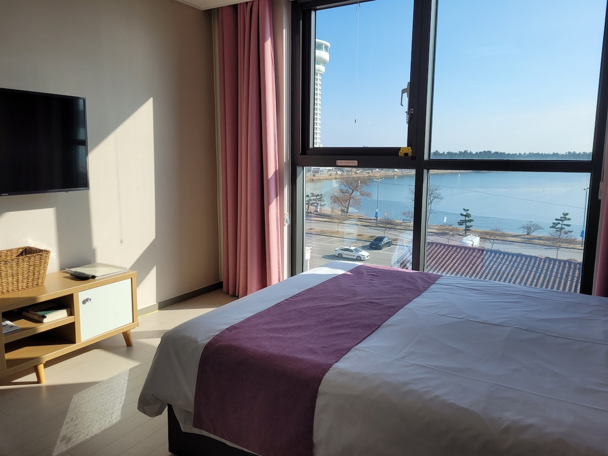 Вид на озеро з ліжка! Море вночі! Безконтактне приготування їжі. Безкоштовний Netflix/Готель Gyeongpo High Ocean