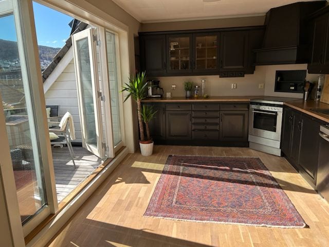 Leiligheten er koselig, lettstelt og har veldig fin beliggenhet på Møhlenpris i Bergen sentrum. Møhlenpris er en fantastisk fin sentrumsbydel med butikker, bystrand, idrettsanlegg, restauranter og kafeer. Leiligheten har tre soverom, to med dobbelseng. Den har to koselige takaltaner, mot vest. Leiligheten ligger i en stille bygård med familieleiligheter, rett over gaten fra Møhlenpris skole.