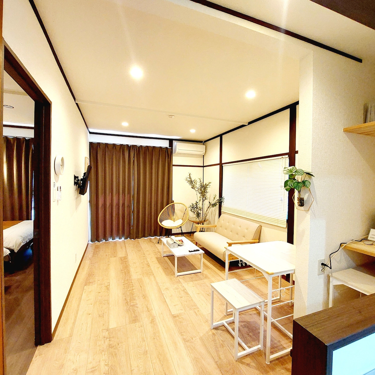 Простора квартира з 3 спальнями в тихому районі, всього в 3 хвилинах ходьби від станції Хорікава та приблизно в 20 хвилинах їзди на автомобілі від центру міста. До нього легко дістатися поїздом або автобусом. Ця квартира з кухнею та 3 спальнями розташована на другому поверсі з окремим входом та сходами, що забезпечує приватність та спокій — ідеально підходить для сімей або груп. ※Кондиціонер встановлено лише в спальні. Щоб опалювати або охолоджувати інші кімнати, будь ласка, тримайте двері відчиненими. Він достатньо потужний, щоб охопити всю квартиру.