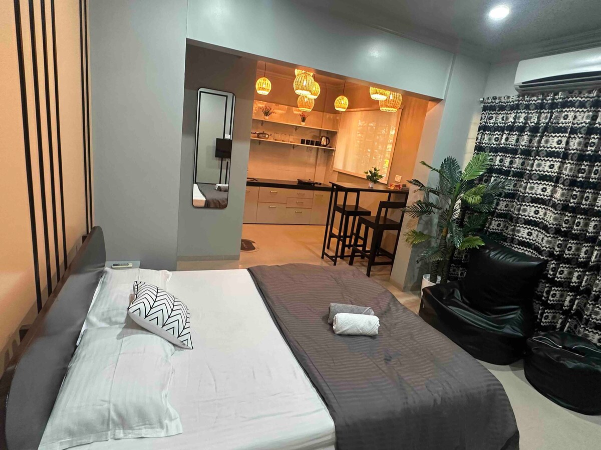 Завітайте до Stillspace – дизайнерської студії, де поєднуються спокій і розумний стиль життя. Світло адаптується до вашого настрою, музика м’яко поширюється по кімнаті, а коли ви кажете «на добраніч», у помешканні вимикається світло. Кожна деталь створена для того, щоб зробити міське життя легким – продуманим, спокійним і тихо розкішним. Розумне житло з підтримкою Alexa для безперебійного комфорту Затишне ліжко розміру «queen size», м’яка білизна та облаштована вітальня Компактна, добре обладнана кухня Центральне розташування – за кілька хвилин від парку Корегаон, кафе та нічних клубів Кальяні-Нагар
