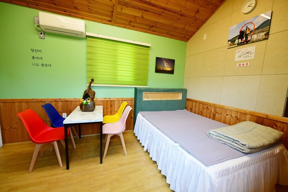 Вітаємо! Ми - Онда, яка досліджує та пропонує різні зони відпочинку. Сподіваємося, що всім, хто залишиться тут, буде комфортно і щасливо. [Вступ до розміщення] З нашого пансіонату «Подорожі на острові Чхонсан» відкривається найкращий краєвид на прекрасні пейзажі. Це прекрасний новий дерев 'яний пансіон, де можна насолодитися прекрасним сходом сонця та мальовничим заходом сонця. Сподіваємося, що ви залишите особливі спогади, якими не зможете насолодитися ніде в нашому «Пансіоні подорожей на острові Чхонсан», де ви зможете побачити зірки в нічному небі та познайомитися з фантастичним Чумацьким Шляхом. Сподіваємося, що ви залишите прекрасні та приємні спогади разом зі своєю сім 'єю, закоханими та друзями на нашій «Пенсії для подорожей на острові Чонсан», яка є чистою, красивою та готовою прийняти вас з турботою. [Тип кімнати] Дуплекс: вітальня + кухня + дуплексна спальня A (1 двоспальна) + 1 ванна кімната