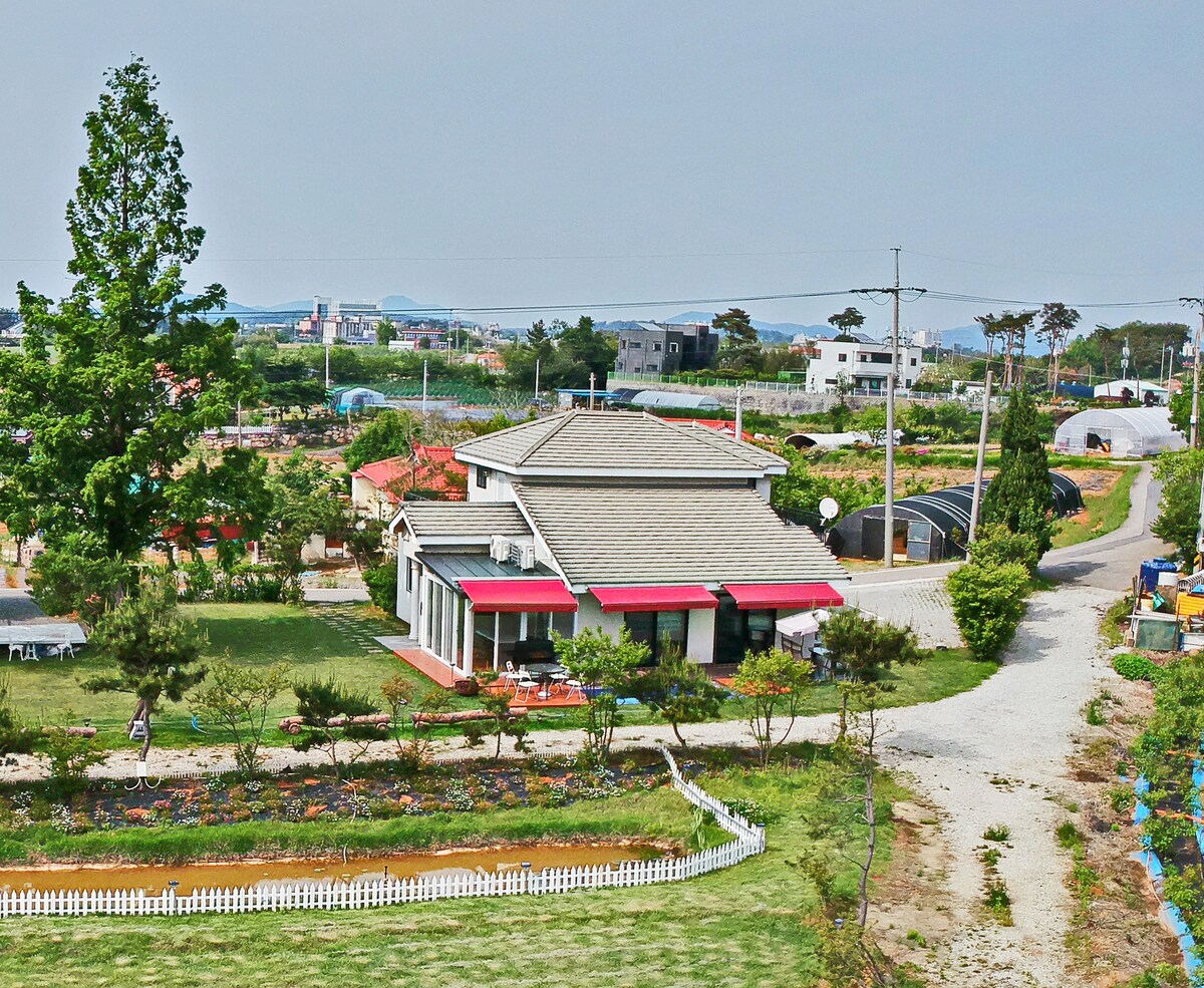 Це тихий сільський котедж, розташований на схилі пагорба Галсан-рі, приблизно в 7 хвилинах їзди на автомобілі від центру Данцзіна. Я приймаю лише одну групу людей одночасно як приватний будинок. Ми рекомендуємо його тим, хто хоче залишити щасливі спогади в затишному помешканні зі своїми близькими та відпочити тихо й комфортно. Художній музей Амі знаходиться приблизно в 5 хвилинах їзди на автомобілі, і це місце, де можна дістатися до Сапгьохона, порту Чанго, селища Вемок, порту Самгільпо тощо приблизно за 20 хвилин. Вам потрібно вийти в продуктовий магазин або ресторан приблизно на 10 хвилин на автомобілі, тому, будь ласка, заздалегідь візьміть із собою те, що вам потрібно. Доступні засоби для барбекю. Під час використання буде додано ще 30 000 вон, включаючи вугілля, і, будь ласка, зробіть бронювання заздалегідь. Собаки не допускаються!! Тут є очищувач холодної та гарячої води та соєвий соус для приправ. Тут є цукор, сіль і перець. Якщо ви шукаєте помешкання Dangjin на сайті порталу, Ви можете перевірити запит.