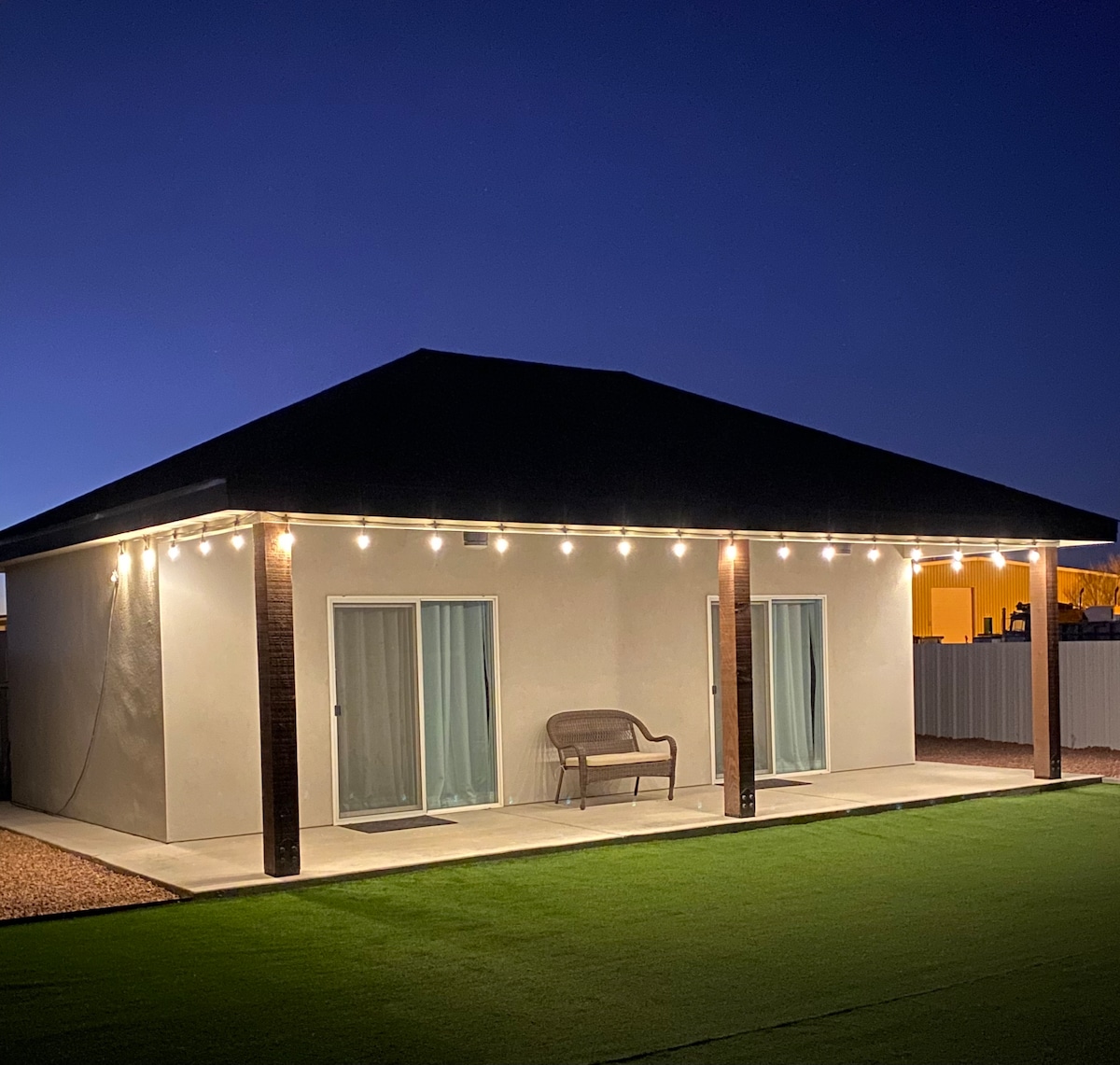 Двохспальне ліжко, одна ванна кімната, розташована в старовинному житловому районі з великим заднім двором, де можна насолоджуватися прохолодними вечорами. Помешкання розташоване безпосередньо навпроти пішохідної стежки Cielo Grande Park Loop, поруч із двома громадськими полями для гольфу, новим водним центром, великими громадськими парками та відкритою природою. Усе в помешканні було оновлено протягом останніх п 'яти років, і ліжка неймовірно зручні. На території є паркінг для великих транспортних засобів. Добре себе ведуть домашні тварини.