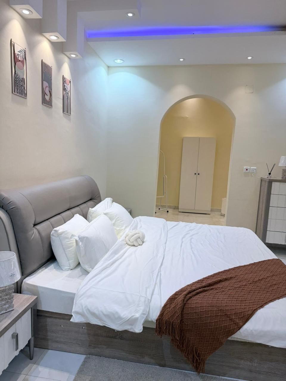 Елегантні апартаменти в готелі в районі Аль-Райян – проєкт Mughni, з сучасним дизайном і повністю обладнані. Ідеально підходить для сімей або відвідувачів, які шукають відпочинку та спокою. 🛏️ 2 спальні (3 окремі ліжка) 🛋️ Просторий зал Вбудована 🍽️ кухня 🚿 2 ванні кімнати 📺 Екран смарт-телевізора, на якому відображаються зашифровані збіги 🎮 Netflix + YouTube Безкоштовний 📶 Wi-Fi Самостійне 🚪 прибуття Безкоштовна приватна🅿️ парковка Доступ і вихід із системи 📍 Поруч із бульваром, рестораном Al Bukhari та всіма послугами. Гарантія 🔒 комфорту: якщо квартира відрізняється від фотографій або є меншою, ми повернемо повну суму без будь-яких обговорень