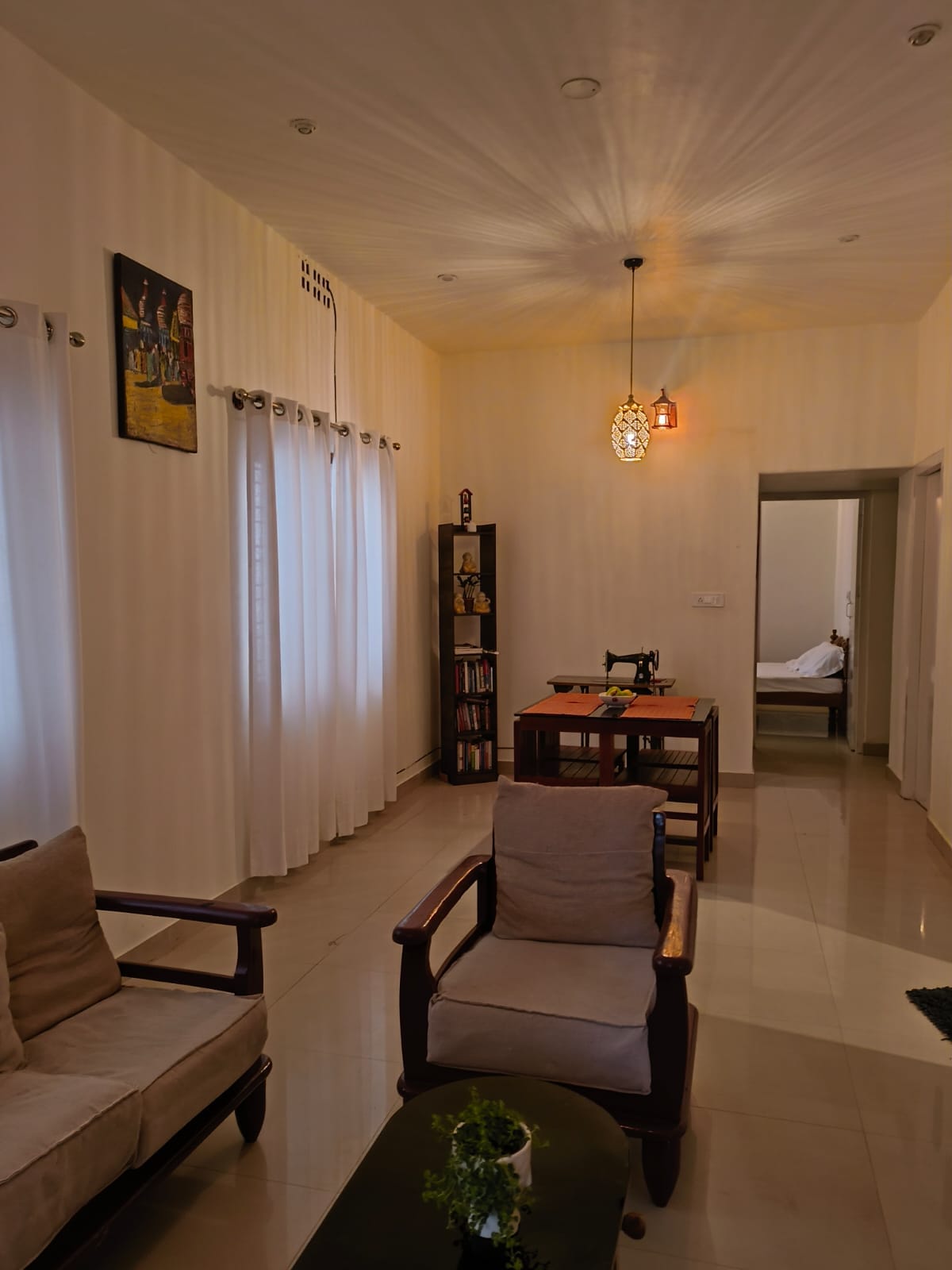 Наша квартира простора, естетична та простора. Вам сподобається величезна вітальня/їдальня, 2 спальні, 2 ванні кімнати, повністю функціональна кухня та балкон з видом на місто, що виходить на пагорби Чамунді. На нашій терасі ви можете займатися йогою або приготувати собі чашку чаю та спостерігати за найкрасивішими заходами сонця. Ми повністю обладнані для розміщення віддалених працівників, довготермінових гостей, сімей та корпоративних мандрівників, з усіма зручностями для комфортного перебування.