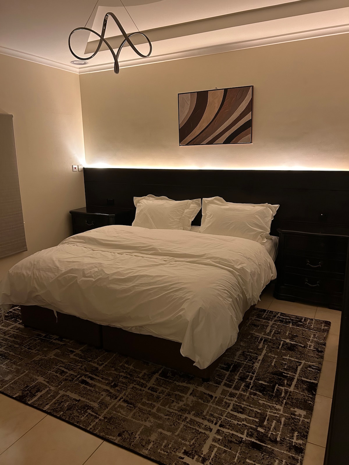 У цьому елегантному помешканні ми гарантуємо вам унікальне та вишукане перебування, в якому надаються всі зручності, на які ви заслуговуєте, і тут ми надаємо розваги від підписок Netflix і Shahid, а також тут ви отримуєте повну конфіденційність і самостійний вхід, у привілейованому місці, близькому до всіх туристичних і сервісних місць.