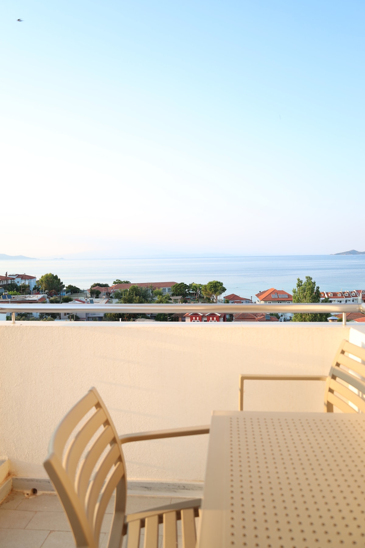 Готель розташований на пагорбі перед морем і над морем, пропонуючи своїм гостям унікальний вид на Егейське море та захід сонця, повністю мебльовані номери/апартаменти різних розмірів - студії або апартаменти та мезонети з однією, двома або трьома спальнями від 2 до 7 осіб, якісне повне обладнання, кухня, кондиціонер, телевізор у всіх номерах, басейни, стійка реєстрації, безкоштовний Wi-Fi, за запитом щоденне прибирання, пральня, сніданок, трансфер від/до аеропорту. Доступний сніданок безпосередньо в номері.