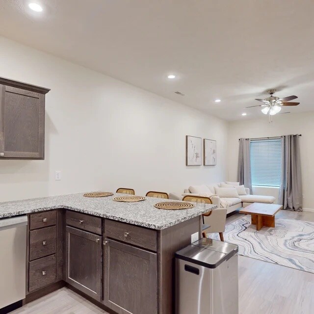 Main level apartment. Kitchen fully stocked for all cooking needs, granite counter tops & stainless steel appliances. Unique dining options & entertainment venues, just short walk away. Hypoallergenic carpeting in bdrms, wood-look luxury vinyl plank flooring rest of apartment & over 10 ft ceilings w/ fans in the living/dining area & all bedrooms. Open floor plan. 43" Roku TV w/ WiFi supplied for guests. Have 1 pack n play for 2 apts so message request for it. 1st request gets may use it
