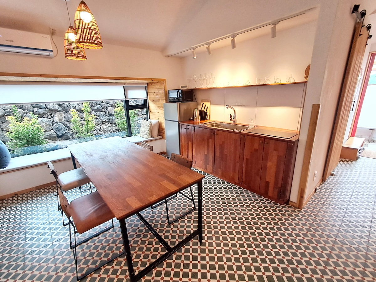 * * Ознайомтеся з іншими питаннями та надішліть запит на бронювання або запит. (Існує пояснення щодо додаткового збору за собак.) Це невеликий кам 'яний будинок із подвір' ям у приморському селищі, де можна побачити традиційну конструкцію будинку Чеджу. Він розташований в 40 хвилинах їзди на прямому автобусі від аеропорту і в 3 хвилинах ходьби від автобусної зупинки, а Aewol Nakjo від приморської набережної пропонує найкращі пейзажі. Зручно ходити пішки до сільського провулку, магазинів, ресторанів та різних зручностей, де кам 'яні стіни зручні. Крім того, собаки можуть бігати на подвір 'ї стільки, скільки забажають. Ви можете подорожувати зі своїм собакою.