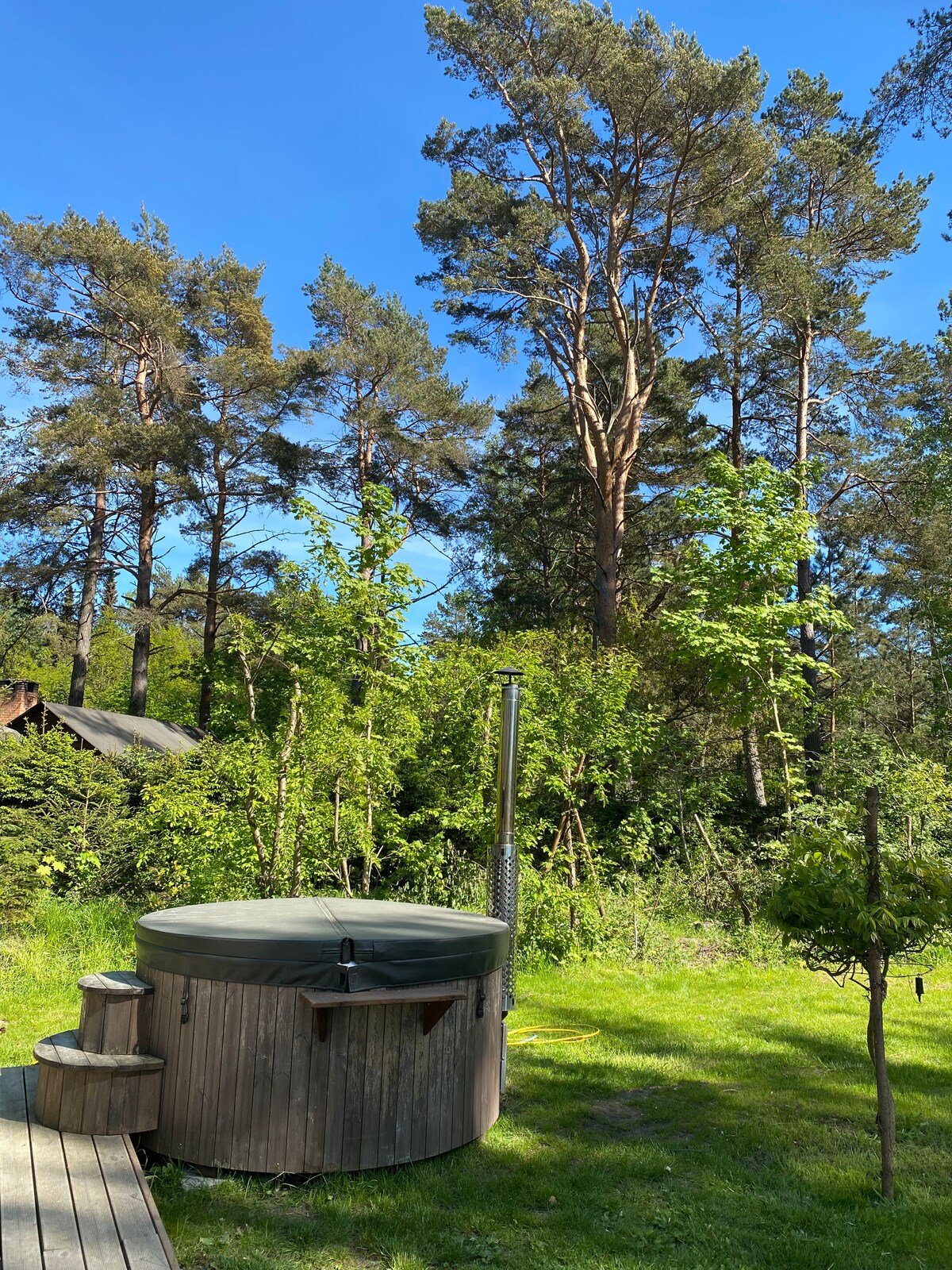 Новозбудований заміський будинок посеред природи - ванна на відкритому повітрі