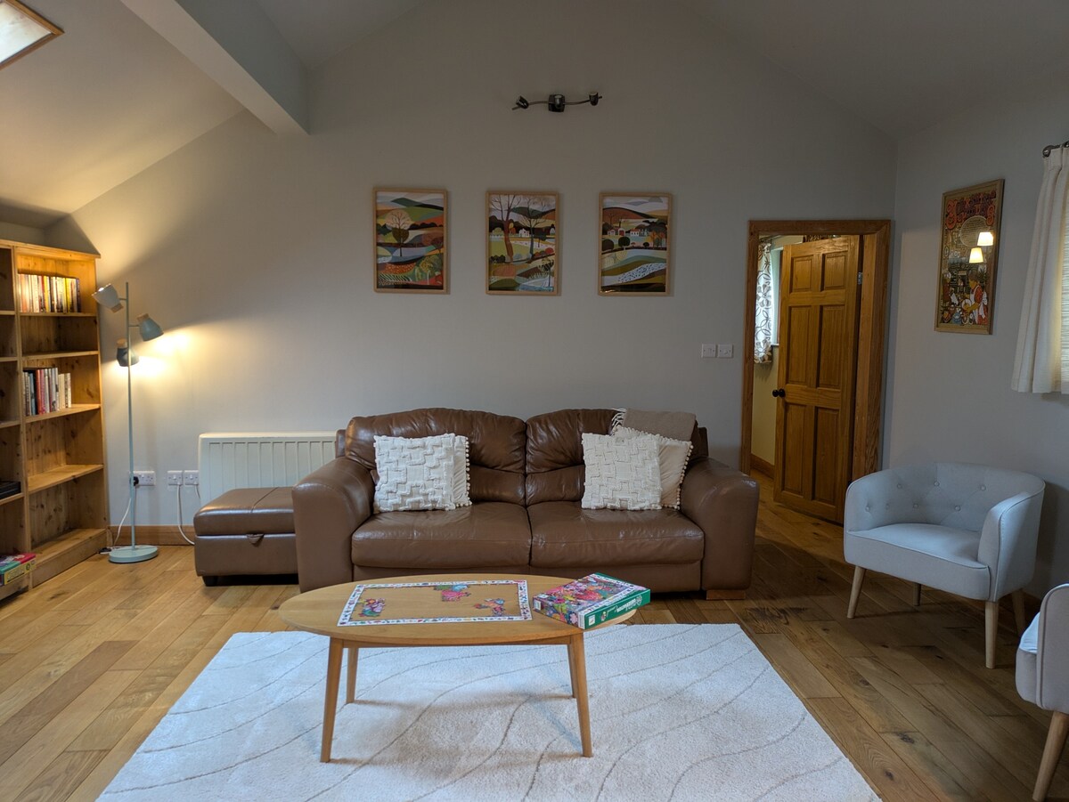 Якщо вам потрібен спокійний абсолютно незалежний відпочинок, не шукайте нічого далі. У лофті є сучасна свіжа вітальня та спальня з двоспальною ліжком і суміжною ванною кімнатою в колишньому лофті стодоли. Звідси відкривається великий краєвид із вікнами на північ, південь, схід і захід, а також приємна відкрита зона з місцями для сидіння та парковкою. Він прилягає до помешкання власників з видом на Малхемдейл з чудовими прогулянками від дверей. Місцевий паб - 1 миля, магазин на фермі - 2 милі.