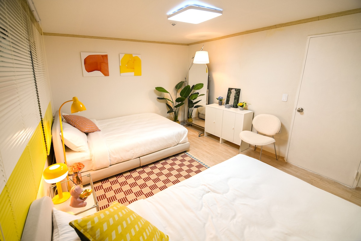 Це приємне помешкання розташоване в центрі Джамсіла, [On You Stay], де ви можете відпочити під час сімейної/дружньої подорожі. Що унікального під ⭐️ час вашого перебування ⭐️ На території є безкоштовна 👉парковка 👉Щоразу прати всю постільну білизну • Ретельна чистота Просторе та приємне помешкання 👉до 6 осіб Приємне розташування на другому поверсі з хорошим 👉сонячним світлом 🏠 Розташування Розташована в Джамсілі, туристичній пам 'ятці № 1 у Сеулі Розташоване на спокійній і безпечній житловій вулиці Це безпечний район з зручностями. Розташована на другому поверсі, вона світла і повітряна! 3 хвилини пішки від станції Сокчон 10 хвилин пішки до Джамсіла Він також розташований недалеко від основних туристичних об 'єктів. 🚿 Будьте чистими Під час прибирання помешкання ми провітрюємо, ретельно прибираємо та стерилізуємо всю постільну білизну, щоб підтримувати чистоту в помешканні. 👕 Зручно Праска з парою для чистого одягу та Праска для волосся та фен надаються як базові засоби для догляду. Веселіться з 📺 Wi-Fi, Netflix, Youtube та корейським мовленням