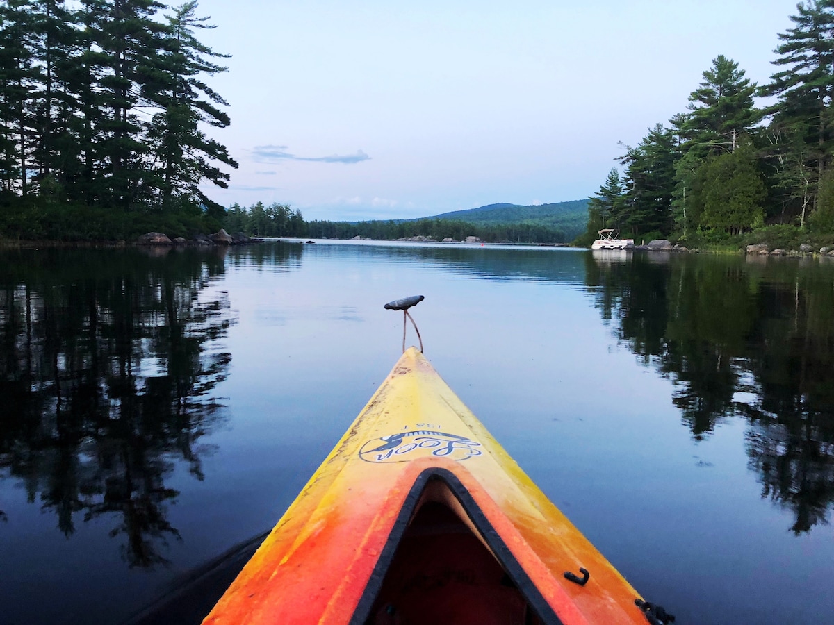Gran Den — це великий будинок, зручний для дітей, розташований на західному березі озера Тодді-Понд (9 миль). Насолоджуйтеся приватністю, приголомшливими піднесеними заходами сонця, причалом, плотом, каное, великим двором та тенісним кортом! Палуба простягається на довжину помешкання - чудово підходить для гриля, засмагання, харчування, напоїв, сну та споглядання зірок. Набережна та тенісний корт всього в 100 футах від тераси. Насолоджуйтеся всіма пропозиціями природи, лунами, лисими орлами, гудінням птахами – на озері, де ви відчуєте себе власним. Поруч із національним парком Акадія, оленем оленів і Блакитним пагорбом.
