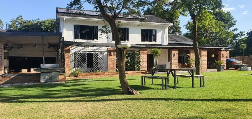 Наша оселя - це квартира з 4 спальнями на першому поверсі (розширюється до 7 спалень за попередньою домовленістю) з лаунжем із каміном та великою кухнею. На території є великий розважальний балкон з закладом Braai. Ніяких вечірок, будь ласка. Примітка. У нас є ще 6 спалень внизу, якщо вони потрібні. Дуже близько до селища Сем Леві, гольф-клубу та торгового центру Borrowdale Brooke, історичної школи , торгового центру Helensvale та станції обслуговування. Великий приємний підстрижений сад