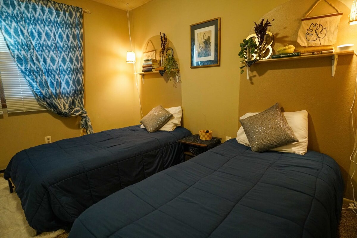 Цілком помешкання з двома спальнями поблизу центру міста Фарго, NDSU, Громадського центру, Fargo Dome та лікарні в центрі міста Сенфорд. Будинок повністю обладнаний швидким Wi-Fi, розумними телевізорами та кабельною мережею. У недавно відремонтованій ванній кімнаті є душ та підлога з підігрівом. Кухня готова до використання з кавоваркою Keurig і всіма гаджетами/дрібними приладами, які вам знадобляться під час перебування. Це місце чудово підходить для тривалого перебування на вулиці з паркінгом поза вулицею, внутрішнім двориком ззаду та кедровим настилом спереду.