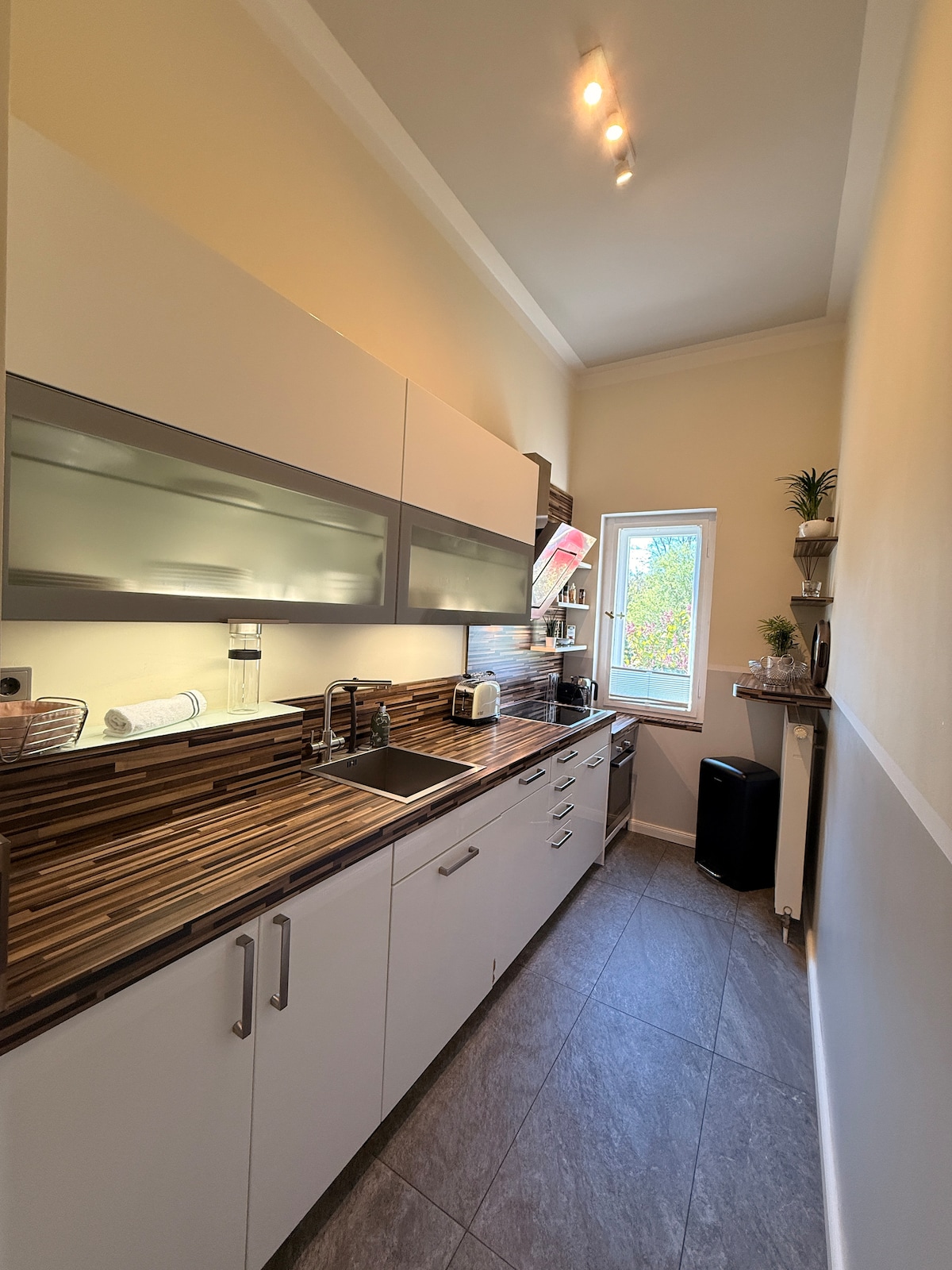Привіт і ласкаво просимо до вашого нового будинку для відпочинку в центрі Дрездена. Ви можете очікувати дуже стильну, високоякісну модернізовану 3,5-кімнатну квартиру з 2 спальнями, додатковим двоспальним ліжком у вітальні з видом на історично вирощений сад. Насолоджуйтеся вечірнім сонцем на терасі з вечерею або келихом вина та дерев 'яним вогнем у джакузі. Ви знайдете все необхідне для незабутнього часу в Дрездені на місці.