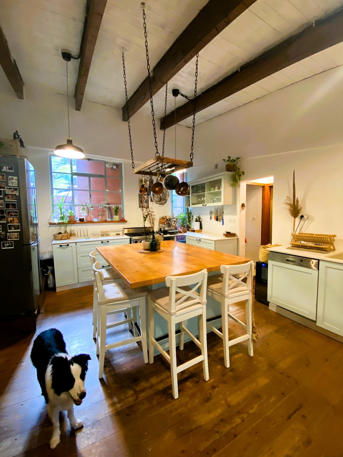 Stay in my luxurious 3-bedroom home in a quiet village in central Israel, featuring a 6-meter-high ceiling and a unique blend of upscale pop art and vintage decor. Enjoy sunrise views from the master bedroom and sunset from the panoramic terrace with a jacuzzi and outdoor shower. Includes a fully equipped kitchen, kids' room with bunk beds, safe room (mamad) with work and play areas, fast Wi-Fi, Netflix, washer, and dryer. Perfect for does who seeking comfort and style!