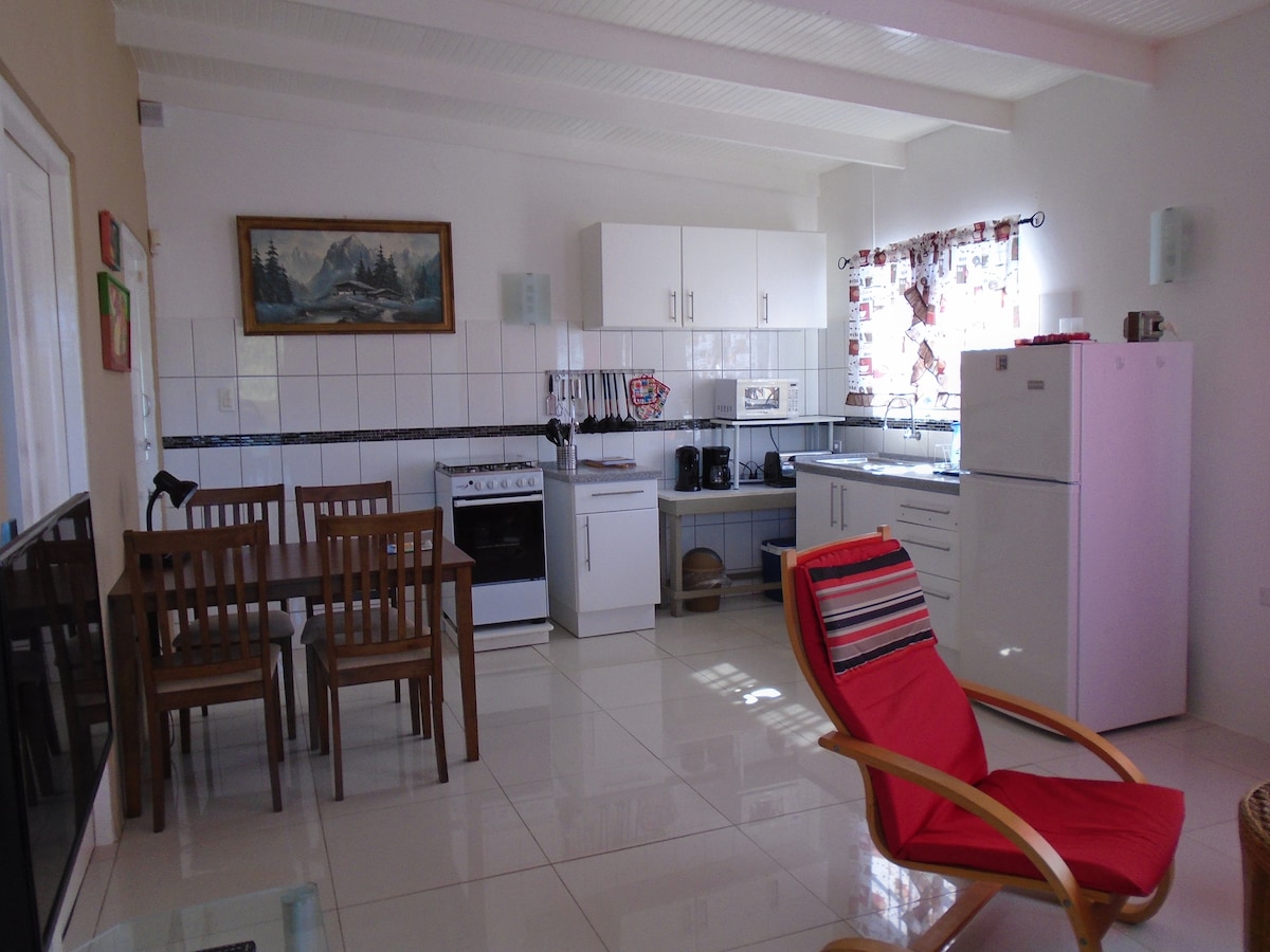 Повністю обладнана квартира на 2-му поверсі, доступна через сходи, для 3 гостей. Приватний вхід і закрита парковка. До послуг гостей 1 велика спальня, 1 ванна кімната, повністю обладнана кухня, затишна вітальня, балкон, безкоштовний Wi-Fi та кабельне телебачення. Всього в 2,5 км (1,5 милі) від аеропорту. Газ і вода включені. Електроенергія залежить від використання, 0,57 за кВт. Депозит 100 доларів США за перебування понад 28 днів. Ідеально підходить для короткострокових і тривалих перебувань.
