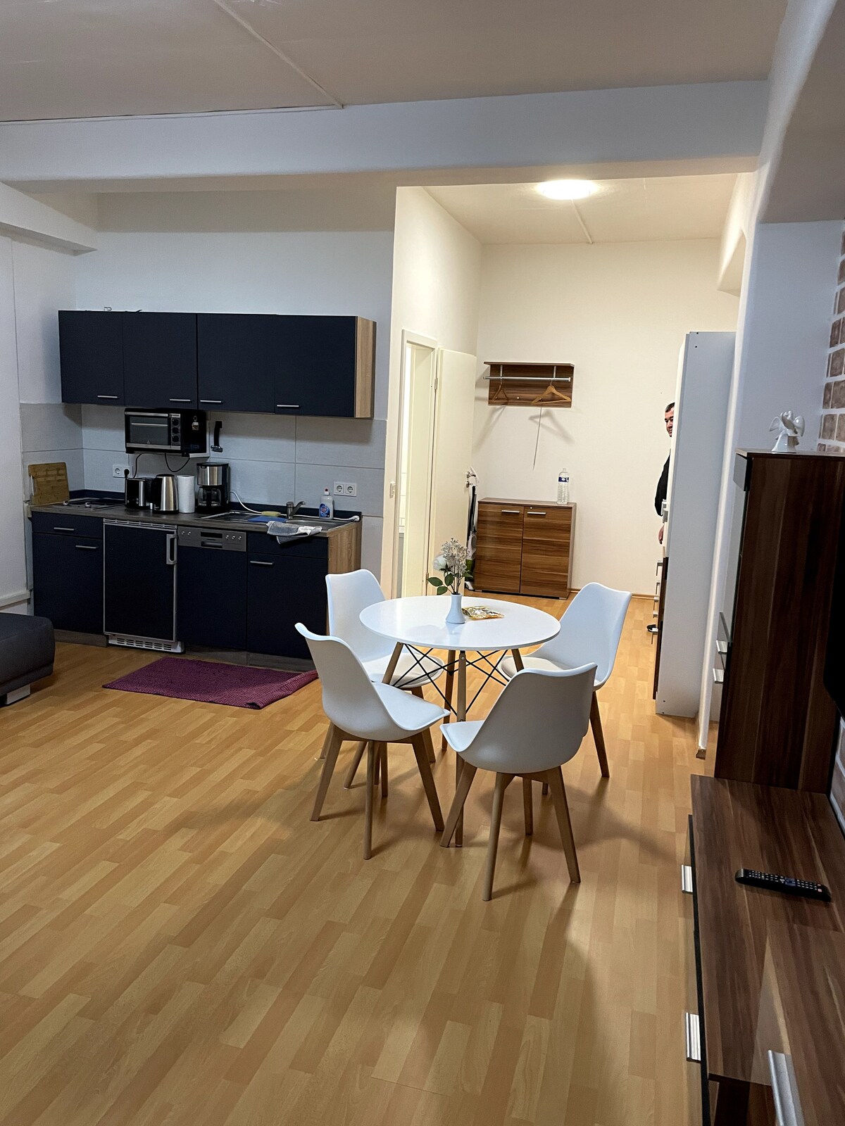 Liebe potenzielle Gäste: Ob auf der Durchreise, für eine kleine Auszeit oder aber für länger - unsere Wohnung ist schnell erreichbar und ein guter Ort, um abends zu entspannen - z.B. auf dem Balkon mit Weitblick. Das Schlafsofa im Wohnzimmer ist sehr bequem, sodass man gut in zwei Räumen schlafen kann. Im Ort gibt es ein schönes Freibad und gute Gastronomie - drumherum viel Wald. Unser Café hat wochentags ab 6 bzw. am Wochenende ab 7 Uhr Frühstück.