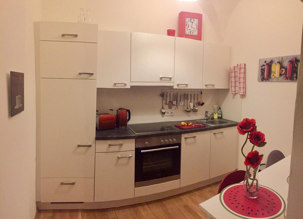 Ми з нетерпінням чекаємо на вас у нашій щойно відремонтованій та з любов 'ю мебльованій квартирі на другому поверсі красивої старої будівлі на околиці міського парку Ґрац. Наша квартира складається з великої спальні, просторої вітальні, кухні, ванної кімнати та окремого туалета. Із вітальні можна побачити трояндовий сад кафе з найкращим сніданком у місті.