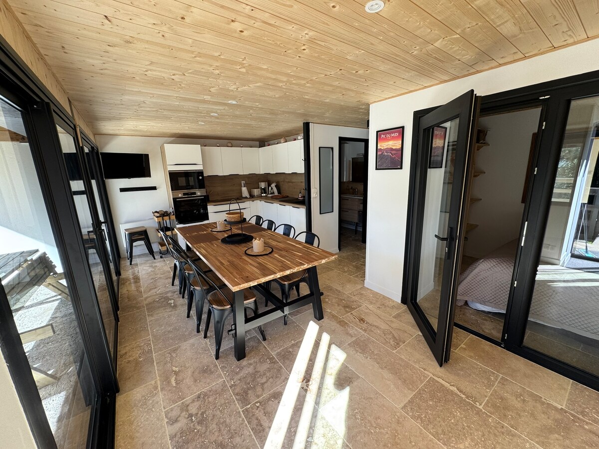 Шале на висотах багнів у дуже тихому районі з видом на долину великий парк 1500 м2 5 хвилин від центру міста Дуже хороший початок для піших прогулянок, велосипедних прогулянок або катання на лижах у Монгії У вашому розпорядженні гірські карти та топоси Обладнання з оптоволоконним та плюсовим каналом Велика ширина ліжка 160 см плюс клацання з матрацом DUNLOPINO з видом на Pic du Midi надані рушники та постільна білизна; Прибуття з 17: 00 Виїзд з 12: 00