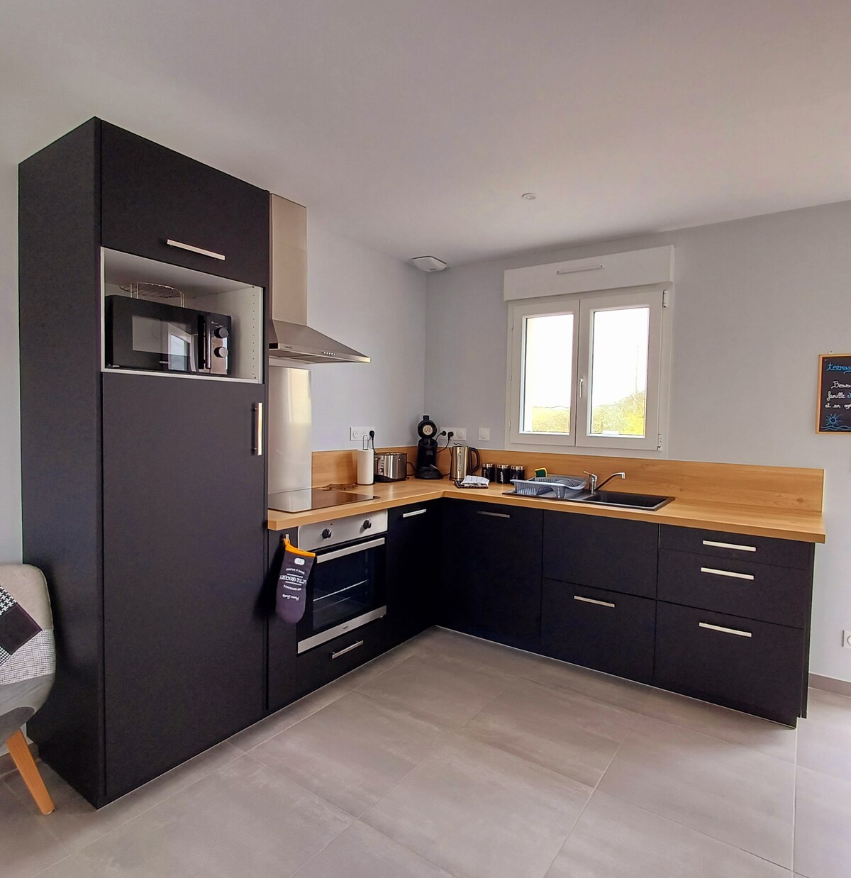 Ми надаємо в ваше розпорядження наш котедж максимум на 6 осіб, він розташований в невеликому заміському селі. Він складається з 5 кімнат, які включають на першому поверсі вітальню (кімната, вітальня), 1 обладнану кухню та 1 спальню з двоспальним ліжком і 2 спальні нагорі, одна з двоспальним ліжком і одна з 2 односпальними ліжками. Можливість мати додаткове ліжко для бронювання на 7 осіб. Ліжка, зроблені після прибуття, і надається постільна білизна для ванної кімнати.