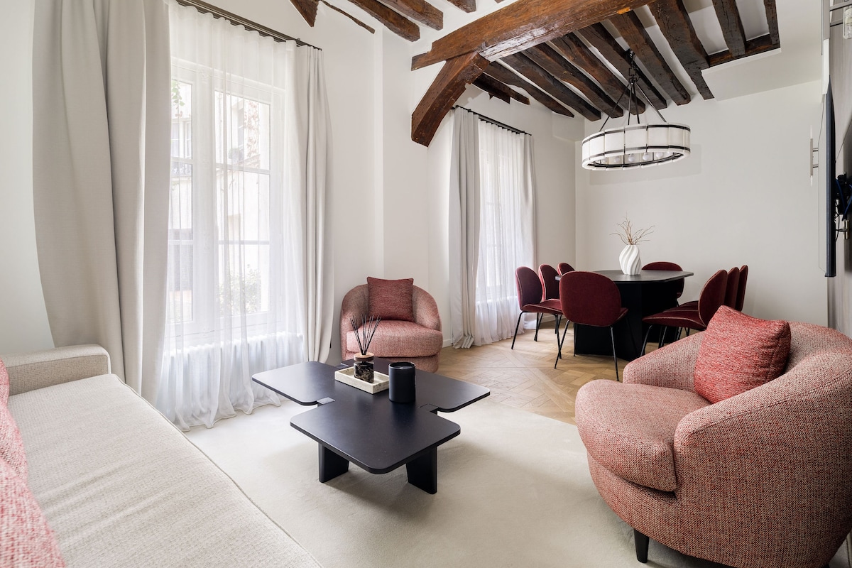 Welcome to your luxurious home away from home, perfectly situated in the heart of Paris, just a few minutes' walk from the Louvre, the Opera, and the Seine. This stylish and contemporary apartment features 4 separate bedrooms, providing a peaceful retreat in the city. The open living area is perfect for unwinding, with a comfortable sofa and a dining table for enjoying meals at home. Ideal for up to 10 guests, this flat combines modern comforts with the timeless charm of Parisian living.