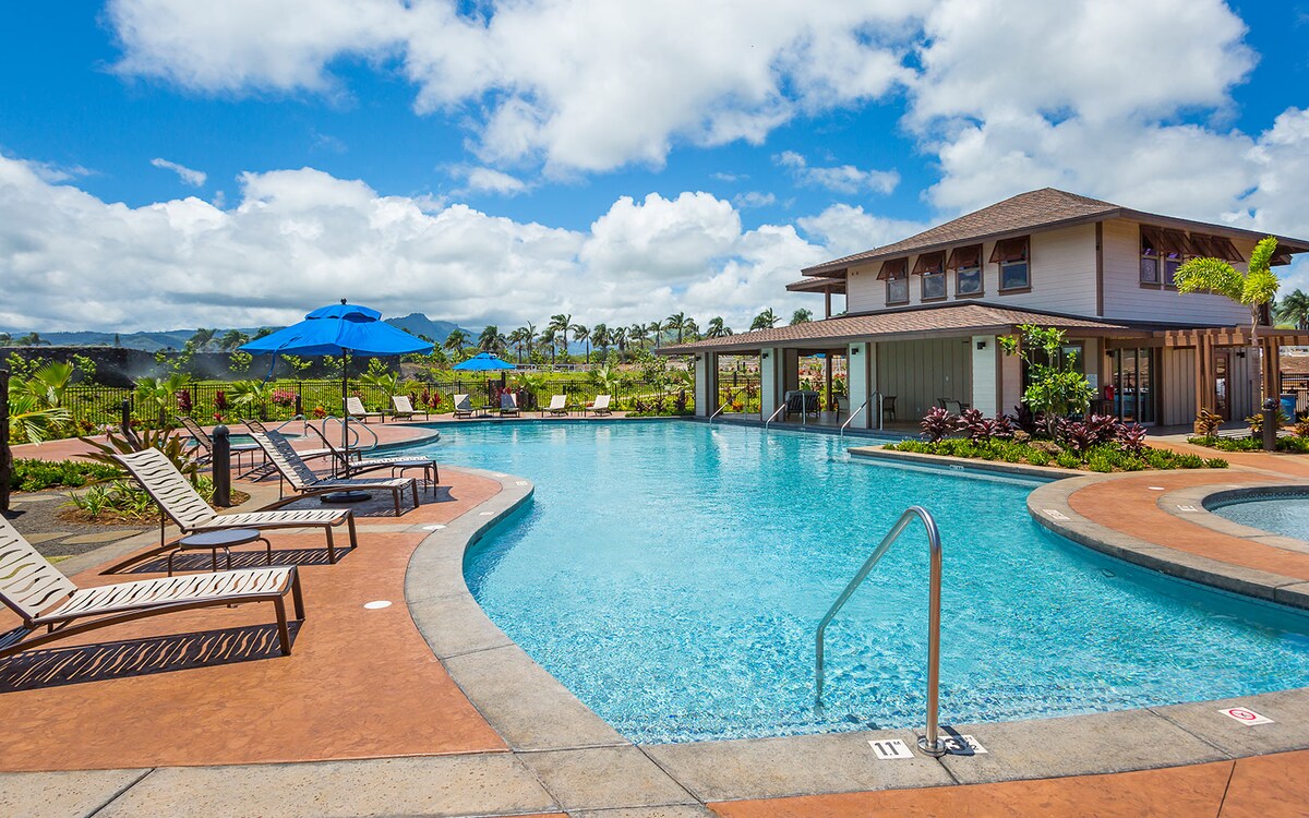 Красива простора квартира на Гаваях з 3 спальнями/3 ванними кімнатами в елітному комплексі Pili Mai в Поіпу, 143 кв. м, кондиціонер, веранда, відкритий планування, острівний декор та повністю обладнана кухня для гурманів. Сучасна техніка, пральня в помешканні, смарт-телевізори та швидкий Wi-Fi. Басейн, тренажерний зал, барбекю та поле для гольфу неподалік. Прогуляйтеся до пляжу Пойпу, магазинів та ресторанів. Ідеально підходить для сімей, пар або тривалого перебування Спальні та ванні кімнати: • Головне ліжко King size, ванна кімната, гардеробна. • Спальня 2: ліжко queen-size, ванна кімната • Спальня 3 односпальні ліжка, ванна кімната поруч