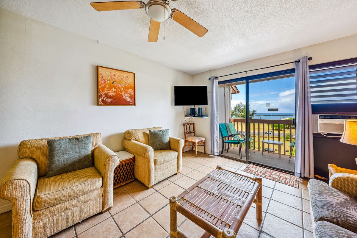 Доступний і сучасний перший поверх, 2 спальні/2 ванні кімнати з вражаючим видом на океан на веранді площею 200 кв. футів. Гранітні стільниці та заповнена кухня чекають на вас, а також пральна та сушильна машини XL, душові кабіни, ліжко King size темпурпедика та декор Tommy Bahama. Насолоджуйтеся пам 'ятками та звуками моря! Немає дорожнього руху, оскільки ви перебуваєте так далеко від Alii Drive. Зручна безкоштовна парковка розташована всього в декількох метрах від нашого помешкання. І прибуття в будь-який час за допомогою нашого замка на основі PIN-коду.