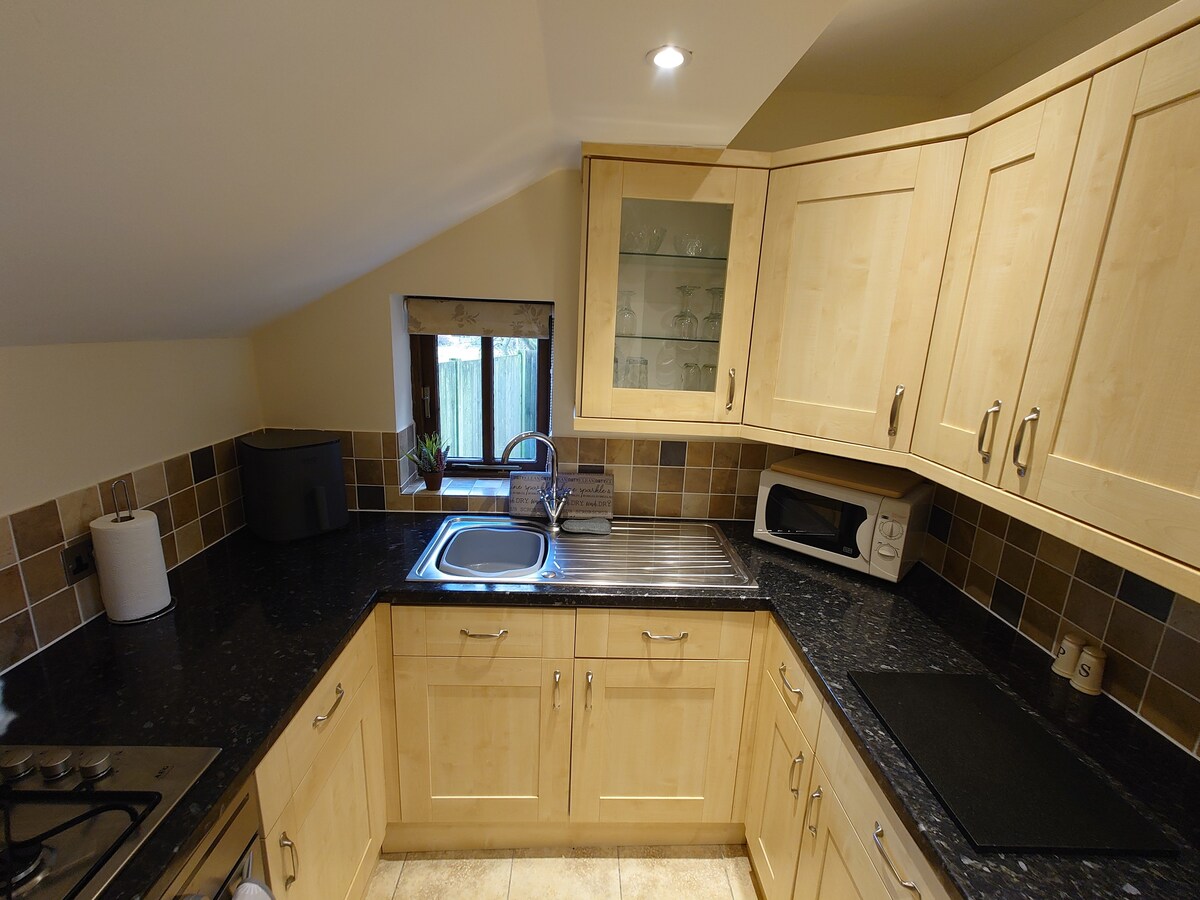 Хата У вітальні є ліжко розміру Super King size зі зручним пінопластовим наповнювачем. Приліжковий столик/шухляди, шафа та розкладний стіл із двома стільцями. Ефективний настінний масляний обігрівач підтримує затишок і тепло в прохолодну пору року. Компактна кухонна зона з посудом і столовими приборами, чайником, тостером, мікрохвильовою піччю та холодильником. Ванна кімната з туалетом, душем і раковиною. Парковка: великий проїзд забезпечить місце для одного автомобіля або невеликого автобудинку, зарядного пристрою для електромобіля. Точки Wi-Fi та USB.
