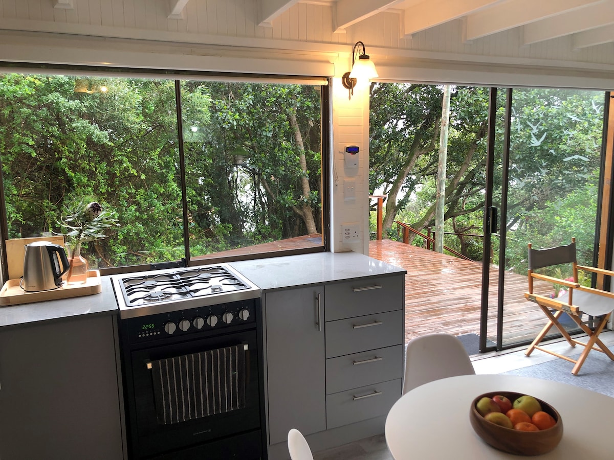 Приходьте подивитися на китів і скуштувати вина! Романтичний котедж із власною кухнею та якісним оздобленням у безпечному маєтку, Онрус — 30 хвилин ходьби до пляжу. Розташований серед дерев, безпечний, приватний, власний вхід. 2 дорослих у спальні з ванною кімнатою + 2 дорослих/дітей на двоярусних ліжках у вітальні (без дітей віком до 2 років). Безкоштовний херес і дрова! Wi-Fi, DSTV, Netflix, безкоштовна парковка. Сонячна тераса з газовим барбекю. Якісна постільна білизна. Кондиціонер. Ринки, винні маршрути та прогулянки на природі. Примітка. Є сходи. ГЕНЕРАТОР ДЛЯ LOADSHEDDING