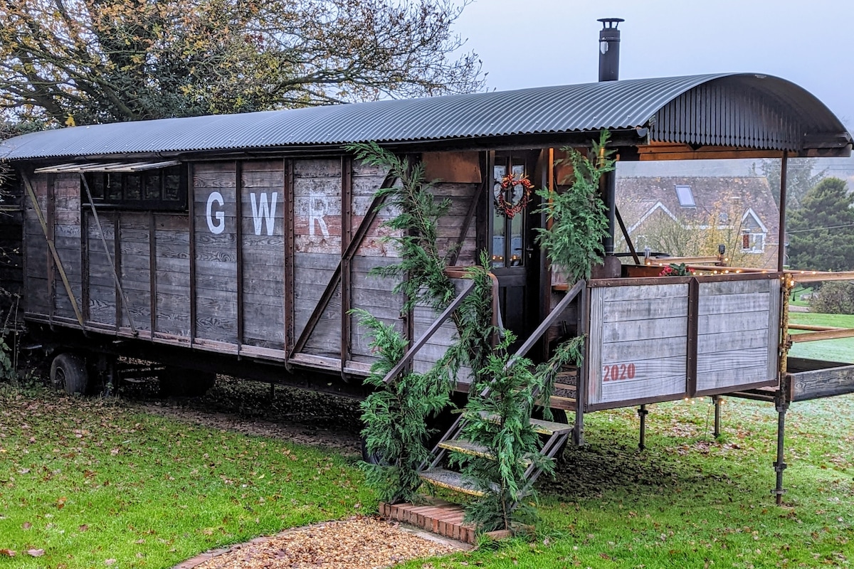 Приватний, затишний залізничний вагон у стилі ар-деко. 1 з 2 вагонів, розташованих на території нашого робочого сімейного будинку в Корвдейлі. Район надзвичайної природної краси в сільській місцевості Південного Шропшира. Вражаючі види з червоними повітряними зміями, які часто кружляють над головою, і фазанами, що ходять по саду. Автономний вагон, що підходить для пар, пішоходів, велосипедистів, байкерів, спостерігачів за зірками та всіх, хто хоче отримати чарівні враження від глемпінгу. Перегляньте також наш інший вагон GWR, Victoria, якщо дати зайняті.
