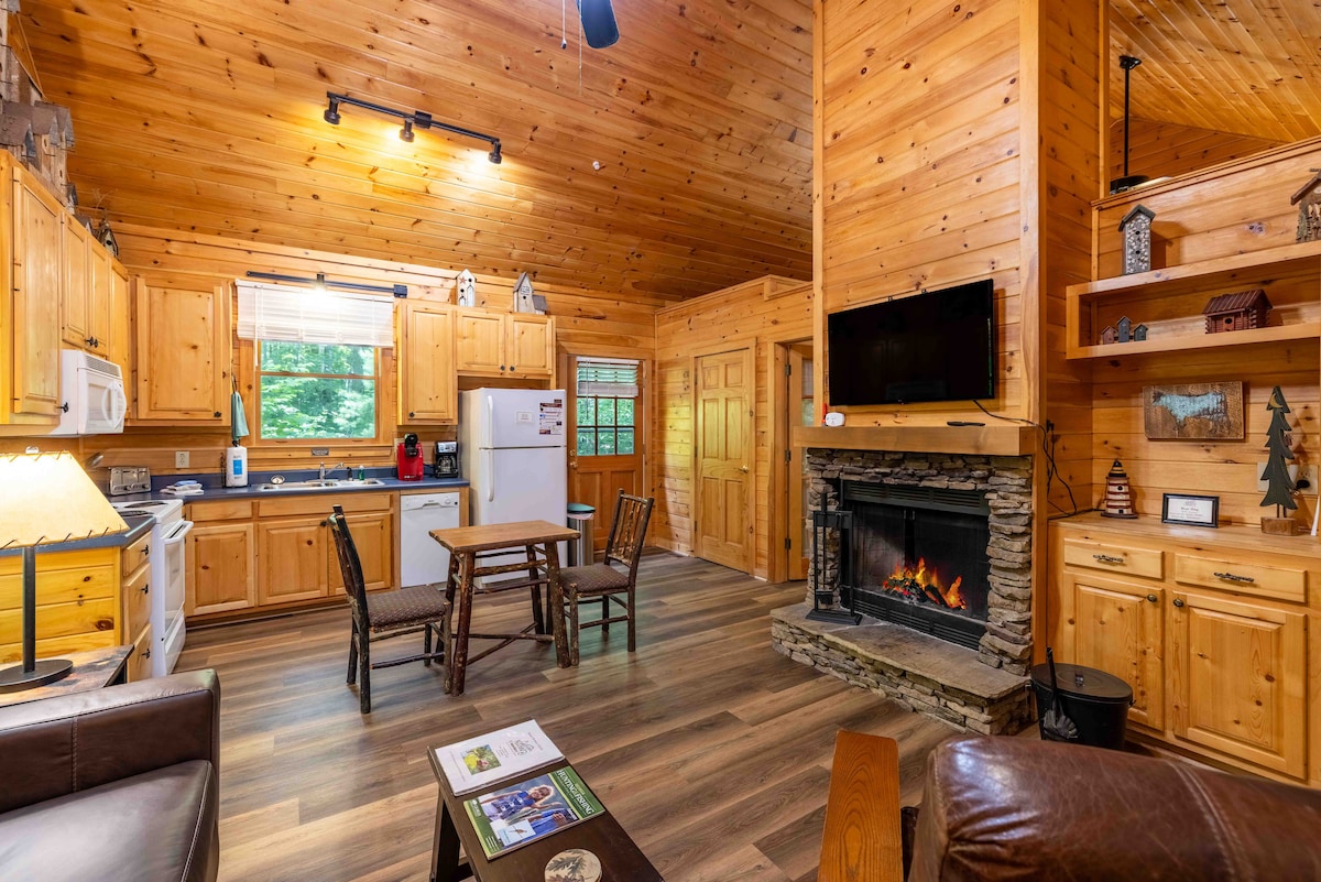 Наш мальовничий краєвид і ідеальне розташування забезпечують дивовижне перебування в Хелен, штат Джорджія. Цей зруб - ідеальний романтичний відпочинок, щоб насолодитися всім, що може запропонувати місто, від виноробень до річкових тюбінгів. ЗА МИЛЮ від центру міста Хелен. У самому будинку є повністю обладнана кухня, ліжко розміру «queen-size», камін, гідромасажна ванна, місце для багаття на відкритому повітрі тощо. Під час перебування тут будинок буде повністю у вашому розпорядженні, безкоштовна парковка, безкоштовний Wi-Fi, окремий вхід і доступ.