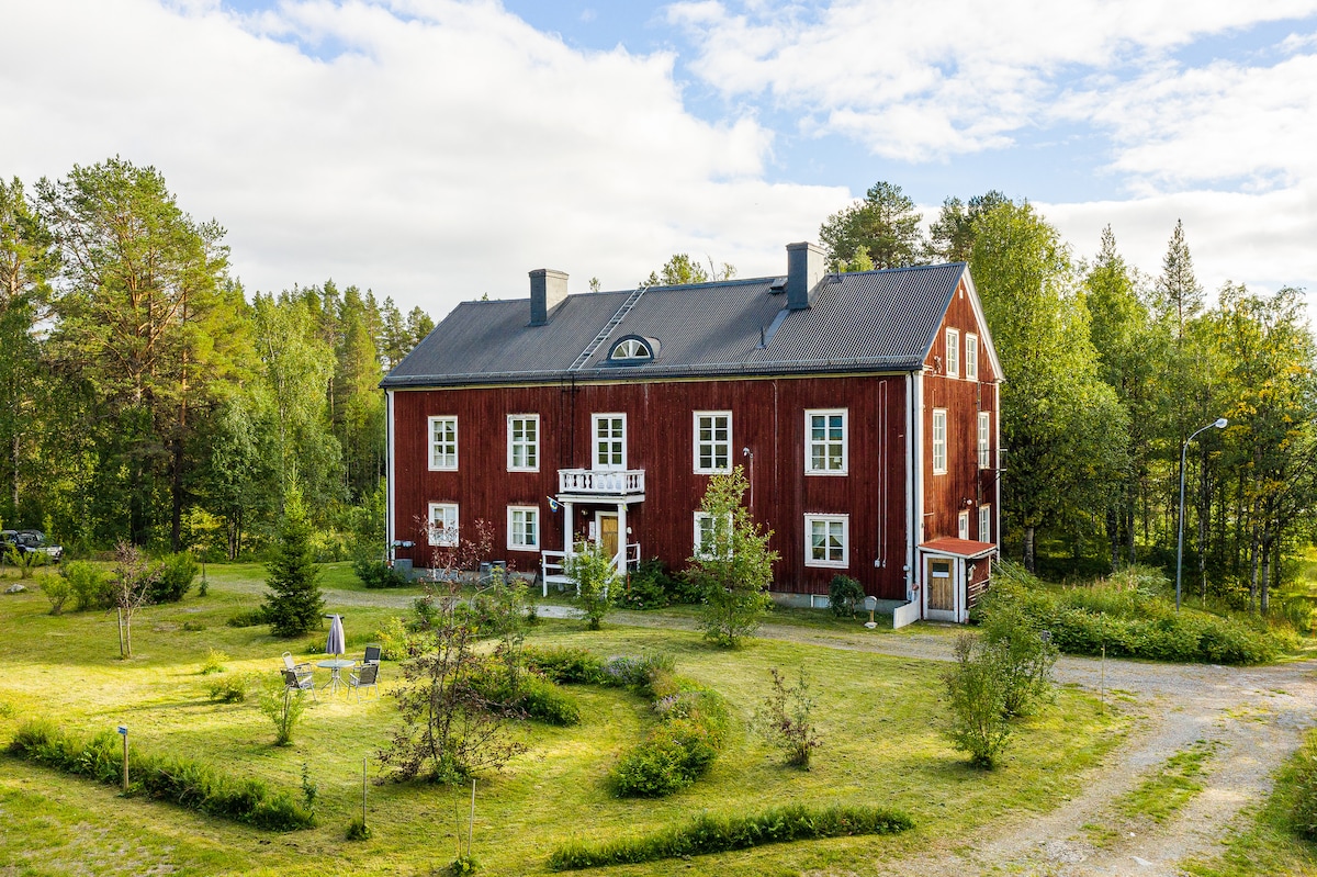 Zeer ruim landhuis met veel voorzieningen, zoals een moderne keuken, open haard. sauna, gym en meerdere sociale ruimtes en 9 slaapkamers. Perfect voor meerdere gezinnen met kinderen of grotere groepen. Direct gelegen aan de snowscooter-route en op 20 minuten autorijden van de skipistes en de loipe van Borgafjall. Buiten de winter om bieden de bossen, heuvels en meren geweldige mogelijkheden voor wandelen, mountainbiken, zwemmen, vissen of jagen.