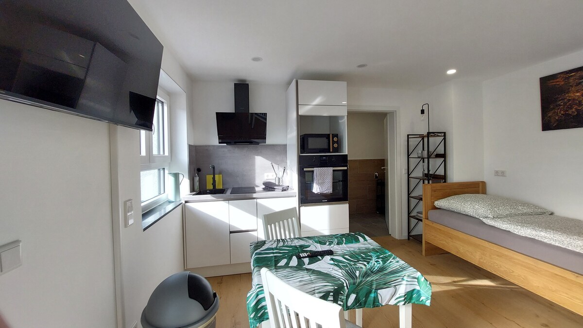 Насолоджуйтеся стильним враженням у цьому помешканні, розташованому в центрі міста; 12 хвилин від автомагістралі A5, виїзд з Вайнхайма/ Бергштрассе. Ви зупинитеся в невеликій затишній тихої квартирі з відкритою вітальнею та спальною зоною, кухнею та невеликою сучасною ванною кімнатою. Місце знаходиться прямо посеред села. Ви можете робити покупки пішки, відвідувати ресторани та кафе. Унікальні пішохідні стежки та гірські велосипедні доріжки запрошують вас до природи та спортивних заходів.
