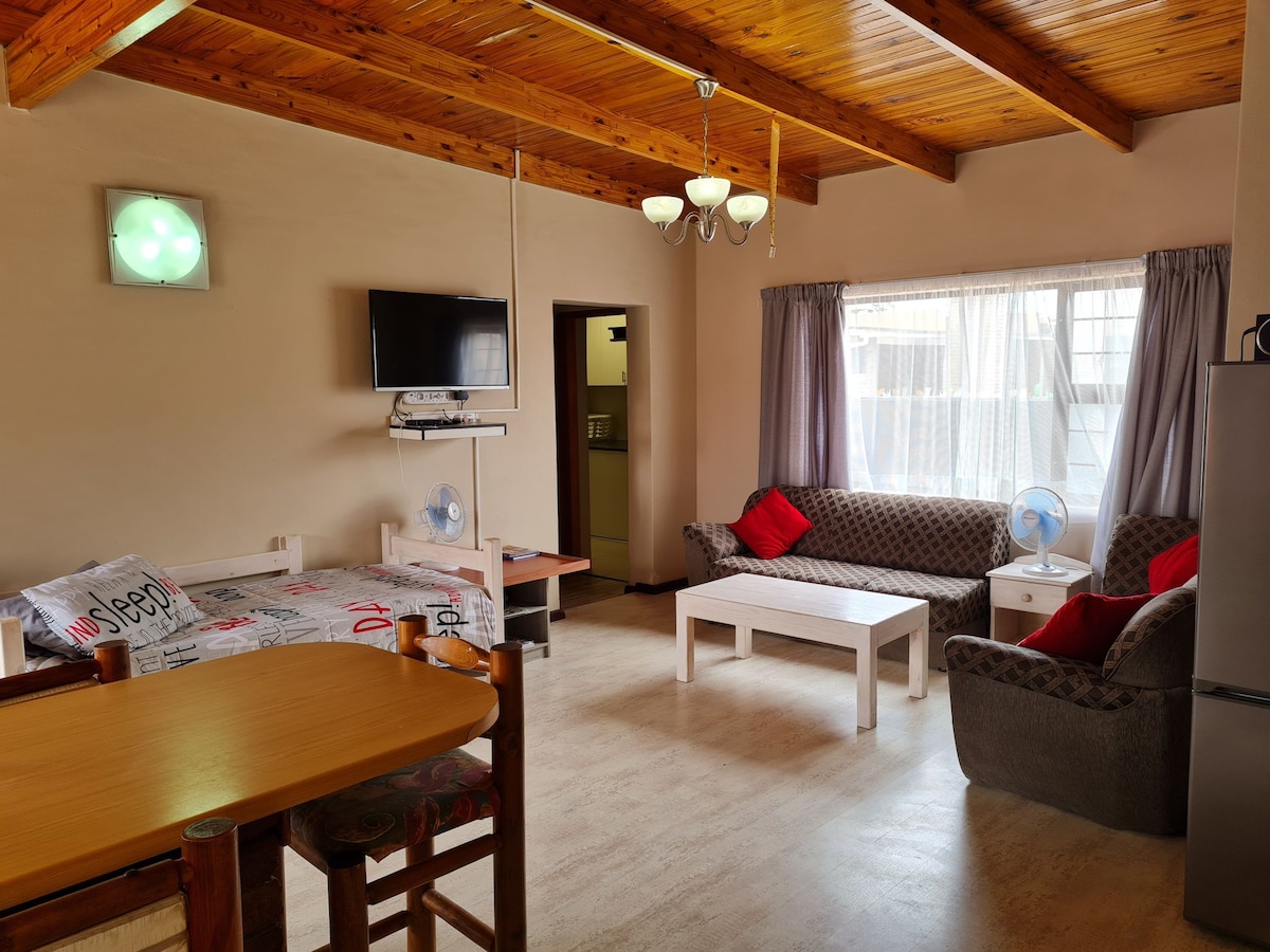 Охайні та просторі 2 спальні, повна ванна кімната, вітальня відкритого планування та кухонна квартира. Барбекю на відкритому повітрі та тераса з фантастичним видом на океан і пустелю. Розташоване на першому поверсі в центральному деловому районі. Це крихітне містечко для відпочинку з великим серцем. Ваша зупинка на шляху до Дамараленда та Етоші. Ідеальне помешкання на базі для щоденних екскурсій неподалік. НЕМАЄ ГАРАЖА Пральня доступна за запитом. Щоденне прибирання за запитом. Ми можемо розмістити 2 додаткові особи.