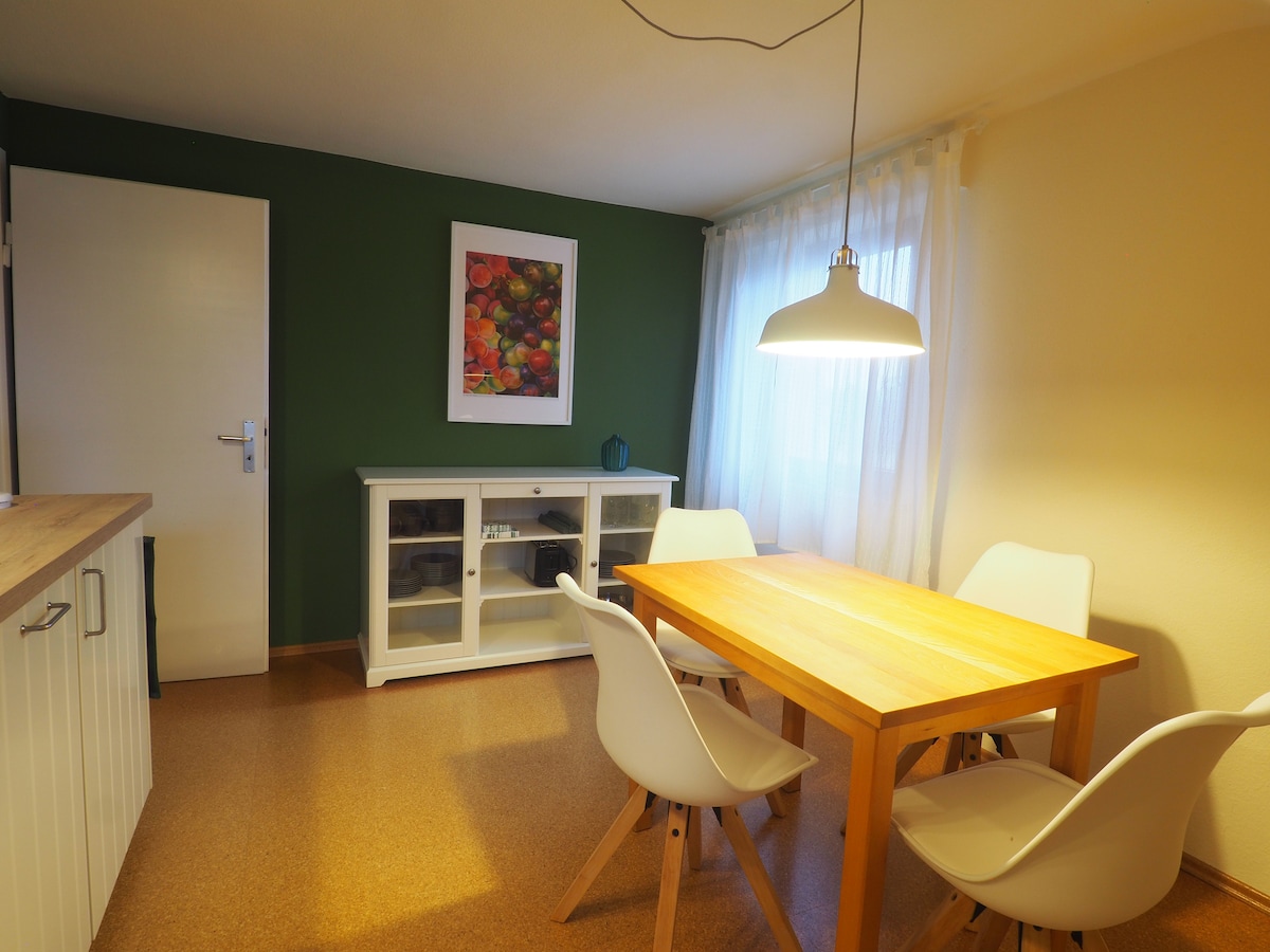 Welcome to Hygge-Flats! Our exclusive apartment awaits you for your short- or long-term stay in Heppenheim, offering a great atmosphere & top comfort: → 1 comfortable king-size box spring bed → 43-inch Smart TV → NESPRESSO coffee machine → A selection of teas and coffee varieties → Fully equipped kitchen → Central location at the marketplace → Family-friendly (baby crib, high chair, children's toys) → Free high-speed WiFi