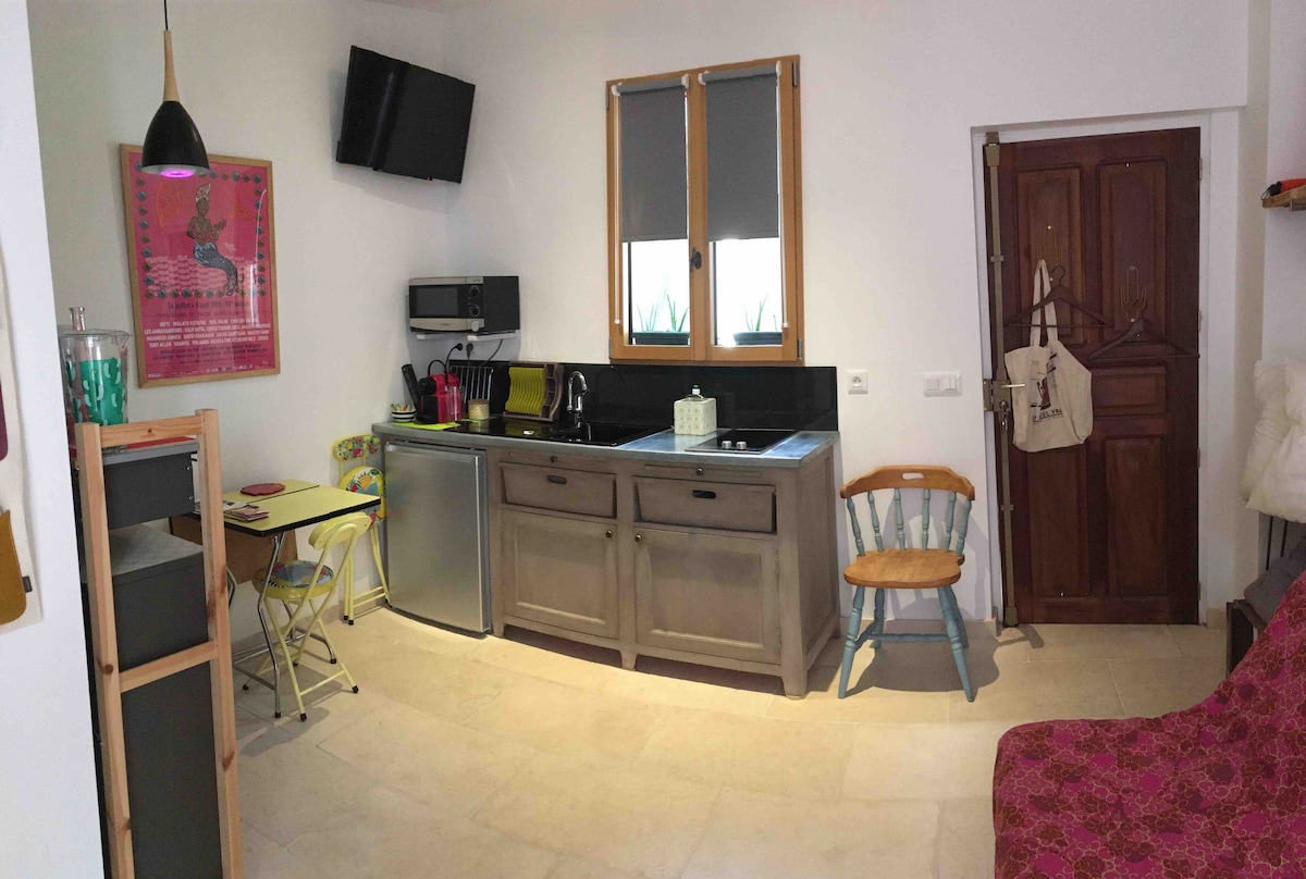 Котедж площею 45 м2 з огородженим приватним двором, ви можете припаркувати там свій автомобіль, маючи місце для їжі на відкритому повітрі. Ви знайдете спокій і спокій у цьому помешканні для коконів. Останній розташований в кінці саду, ви можете приготувати сніданок у супроводі спів птахів і цикад. Ви завжди знайдете кілька речей, які можна зробити в цьому маленькому райському куточку..... За певних умов ви можете насолоджуватися сімейним басейном протягом кількох годин на тиждень