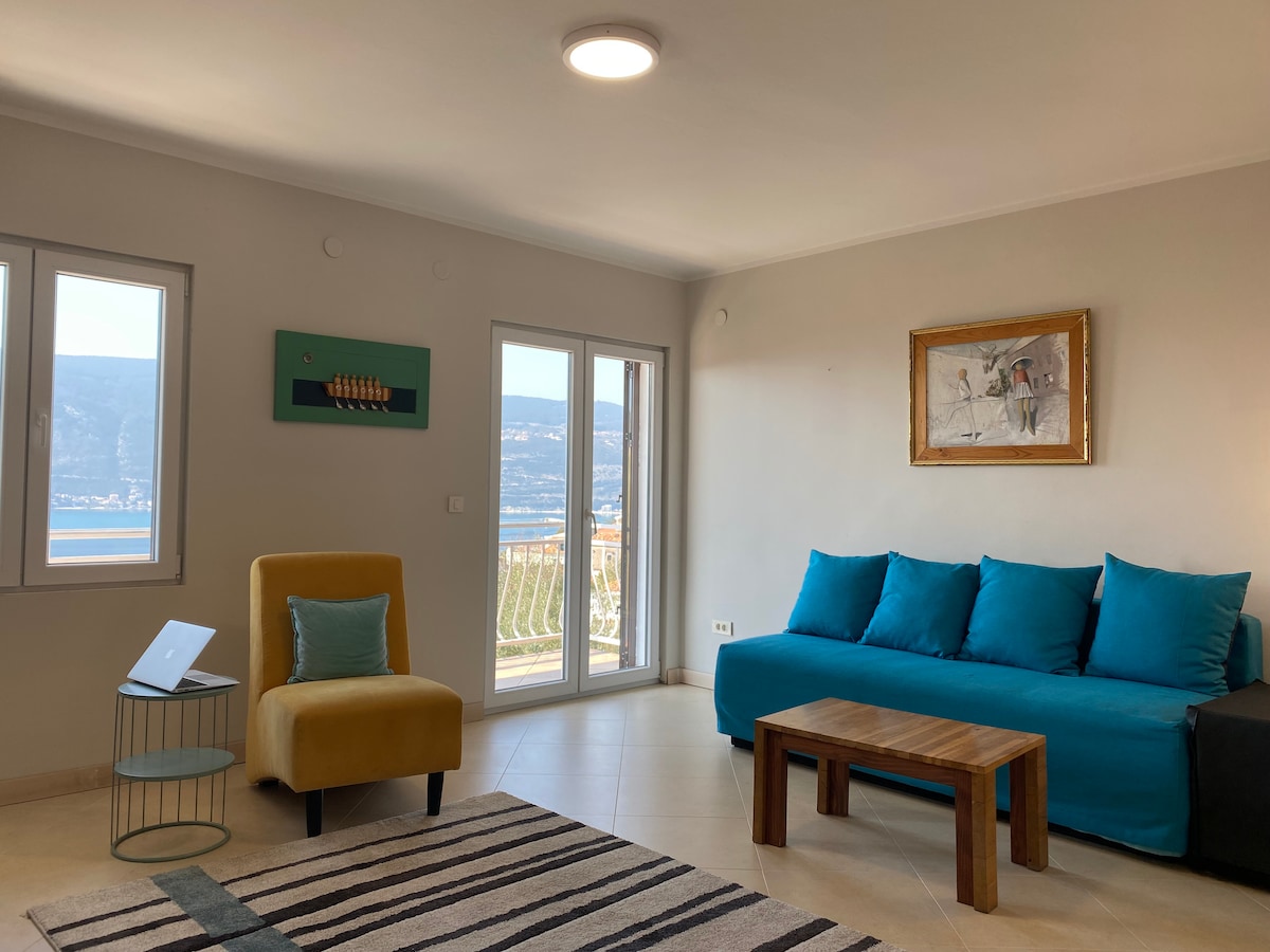Наша повністю обладнана квартира займає найкраще розташування, щоб побачити найдовші та найдивовижніші краєвиди та заходи сонця на рив 'єрі Херцег-Нові, вхід до Которської затоки.