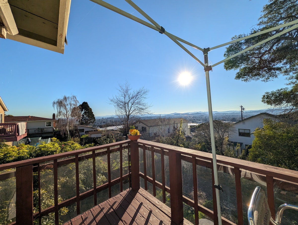 Nestled in May Valley, our guest house offers amazing hill views from your bedroom and private, fruit-tree-lined patio. It's perfectly located to explore top Bay Area attractions like San Francisco and Napa Valley. Plus, all your essential grocery stores are minutes away. Outdoor enthusiasts will love the easy access to nearby natural wonders, including San Pablo Reservoir, Kennedy Grove, Wildcat Canyon Regional Park and many more, all offering fantastic opportunities for exploration.