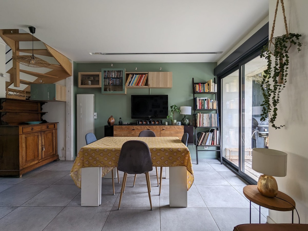 Чарівний відремонтований таунхаус площею 55м ² між Сеною та лісом, 15 хвилин від Фонтенбло і 5 хвилин пішки від залізничної станції Шампань. Приватне помешкання, що поєднує в собі сільський шарм і сучасні штрихи, з теплою вітальнею, обладнаною бальнео для повного відпочинку під час перегляду телевізора. Нагорі - комфортна спальня та одна ванна кімната. Ідеальний компроміс між міською атмосферою та природою, з заспокійливими прогулянками лісом Шампані та берегами Сени, які ідеально підходять для відпочинку.