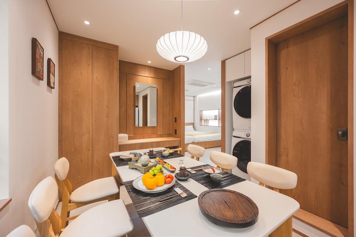 У самому центрі Сеула, де місто сяє яскравіше вночі – ласкаво просимо до Тондемуну. На відміну від галасливих вулиць на вулиці, наше помешкання пропонує спокійне, затишне перебування з теплими дерев’яними тонами та м’яким освітленням — ідеальне місце для відпочинку після довгого дня. - 10-15 хв пішки до DDP & Doota Mall - 5-10 хвилин пішки від виходу 6 (або виходу 4 для ліфта) станції парку історії та культури Донгдемун (лінії 2, 4, 5) - З аеропорту: сідайте на автобус 6001 до зупинки Baiton Hotel (2–5 хв пішки)